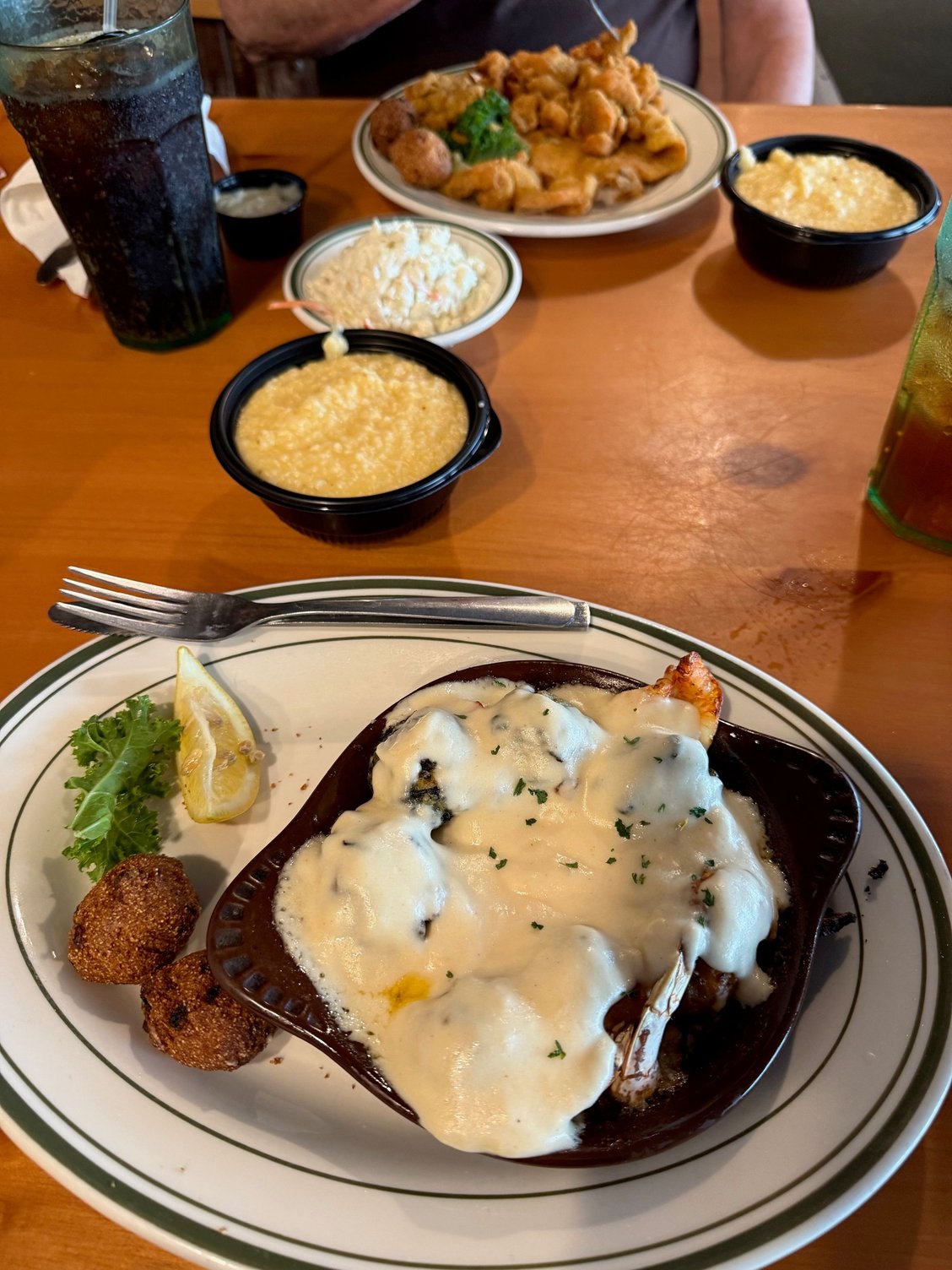 Drove around the seaside town of Gulf Shores which is better maintained than most, but of course with all the usual beach town souvenir shops and restaurants and such. We were struck by the prevalence of signs, even on the message signs of some condo complexes, welcoming Allegiant to town. We probably saw this 5 or 6 places. We ended up eating at a restaurant called the Oyster House which per a sign in the terminal gave 10% off with Allegiant boarding pass. Nice shrimp lunch on the intracoastal. The city seems to have a well funded tax base judging by impressive municipal facilities for its size. We went to the city museum which was mostly about the shrimping industry and then tourism and hurricanes. Oddly though they were very big on a prohibition on photographs of any sort or cell phone usage inside. Must be a story there. We explored around to the Orange Beach side of things which seemed newer and slightly more upscale with some new developments, a new causeway going in from the airport more direct to that side of the shore, and inland a few miles where a lot of what looked like brand new shopping like Publix, Target, and such, was open. We got back to the airport about an hour before departure and I walked over to arrivals to hand over the keys.