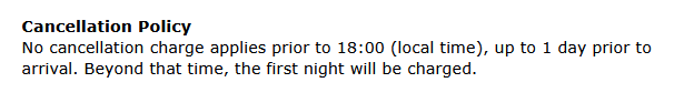 The booking was fully refundable up to 6pm on the day before check-in. After that, a cancellation would have led to 1 night being charged. Therefore from my point of view, the booking was at that point non-refundable. Even if I had not shown up at all, the hotel would've had the right to retain the points for the first night's charge.