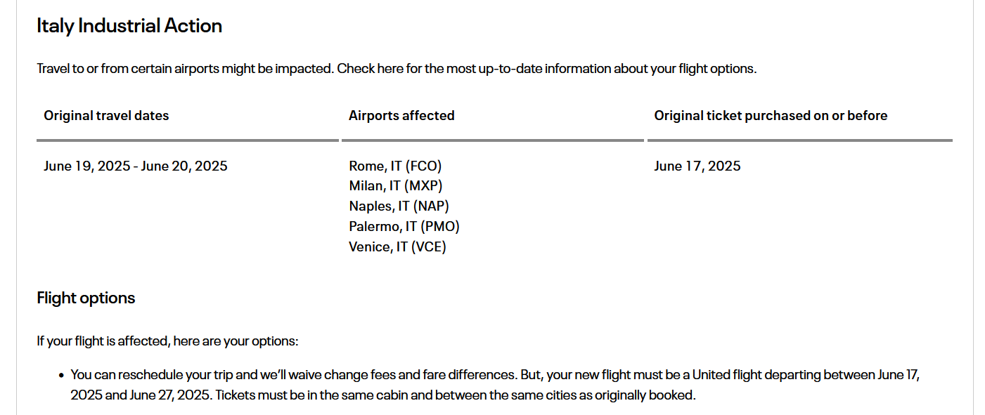 FlyerTalk Forums - View Single Post - Travel Waiver: Italy Industrial Action, 25-26 July 2025 (FCO,MXP,NAP,PMO,VCE) **NEW**