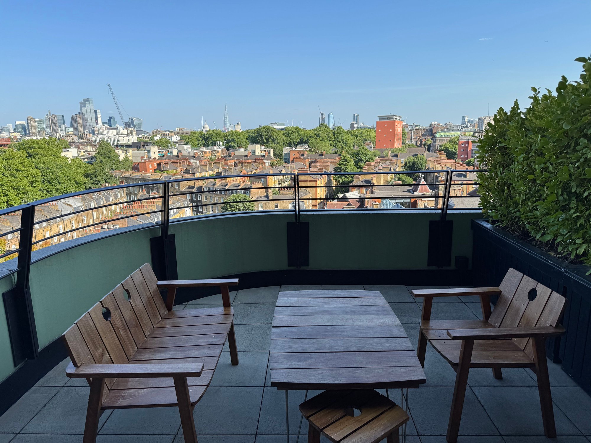 Nothing about the room evoke the idea of a “suite” or a “studio”, and I’d simply take it as a premium room. I like the design, much more understated than the vibrant (or “in-your-face”) public areas and somewhat reminiscent of a chalet. Welcome amenity is a lovely bottle of Spanish white wine retailing about £15. My room did feature a good sized terrace overlooking Bank and The Shard.