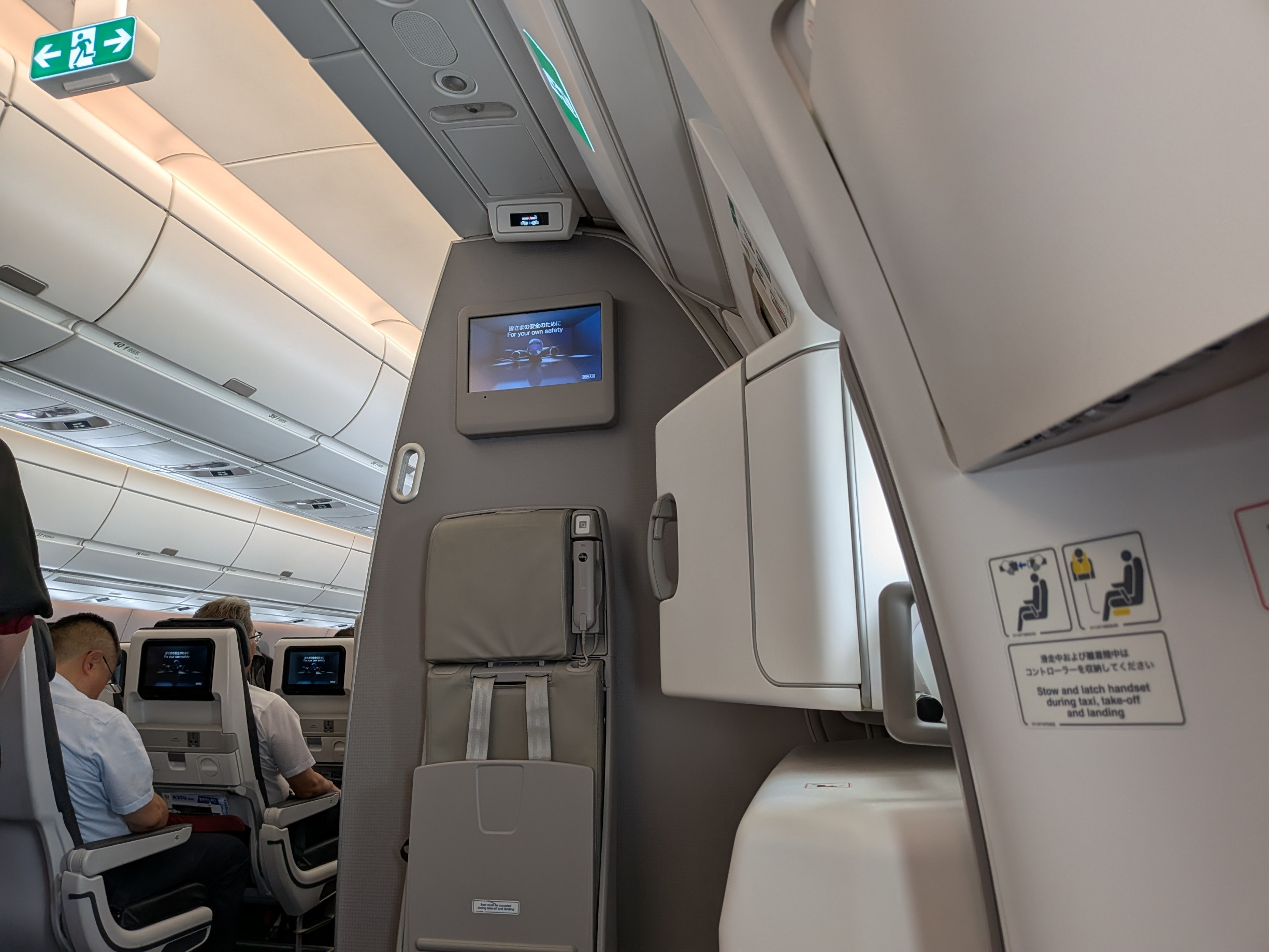 I snuck over to the left side emergency exit to see if I could peep out the window, but saw nothing.