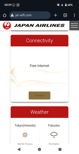 Free Wifi is always appreciated. It doesn't connect until we're at cruising altitude.
