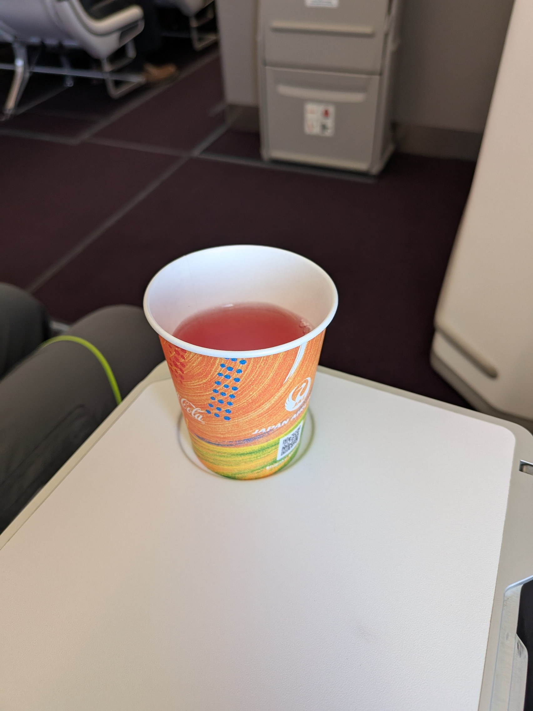 Ah well, at least I could drown my sorrows in the best beverage in the sky, JAL's sky-time peach grape sugar water thing.