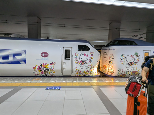 My rail pass included seats on the Limited Express Haruka train to the airport, so in the interest of squeezing a little bit more value out of the pass before I left, I of course went down to take the Hello Kitty train. It helps that the platform for this train - famously far from the rest of the station - happen to be right next to the closest station entrance from my hotel.