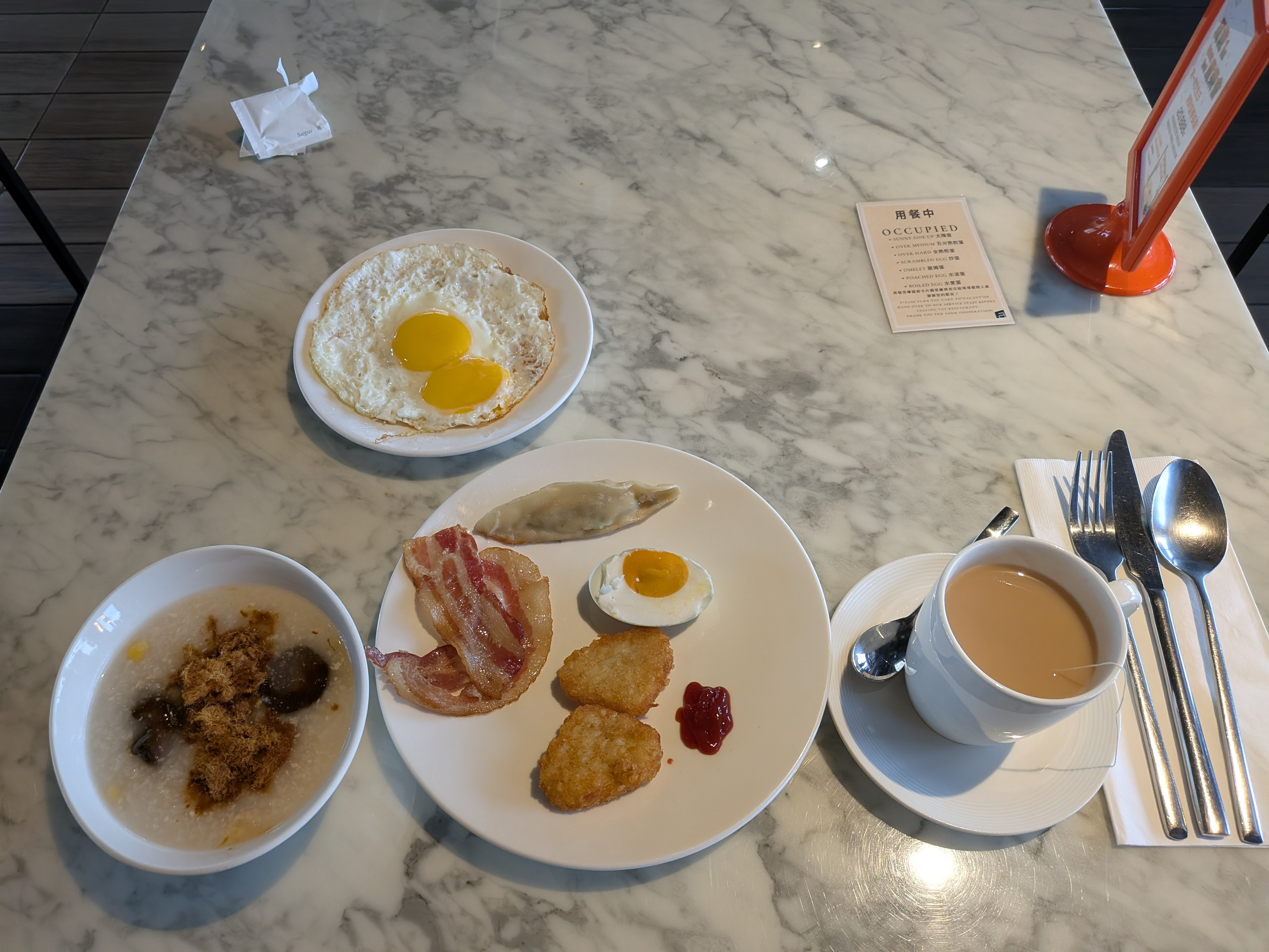 Among some normal breakfast foods, there was also a rotating selection of strangely heavy dishes like noodles and stir-fried pork.