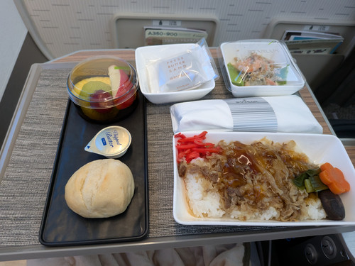This tasted like the best economy meal I've ever had, but nothing you'd mistake for business class. The meat was slathered with some very flavorful sauce that helped it go down, and the sides were unmemorable but edible. Real tableware was provided, but otherwise, nothing about the meal itself felt elevated from what the best airlines serve in economy.