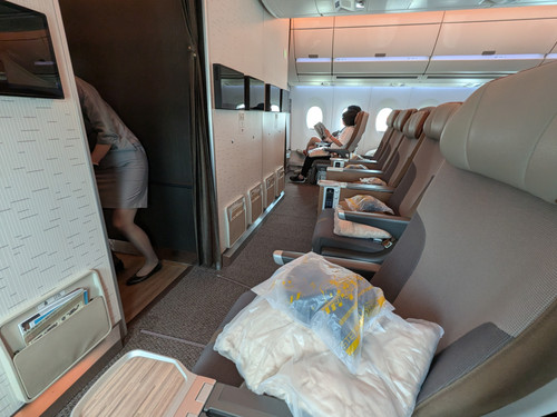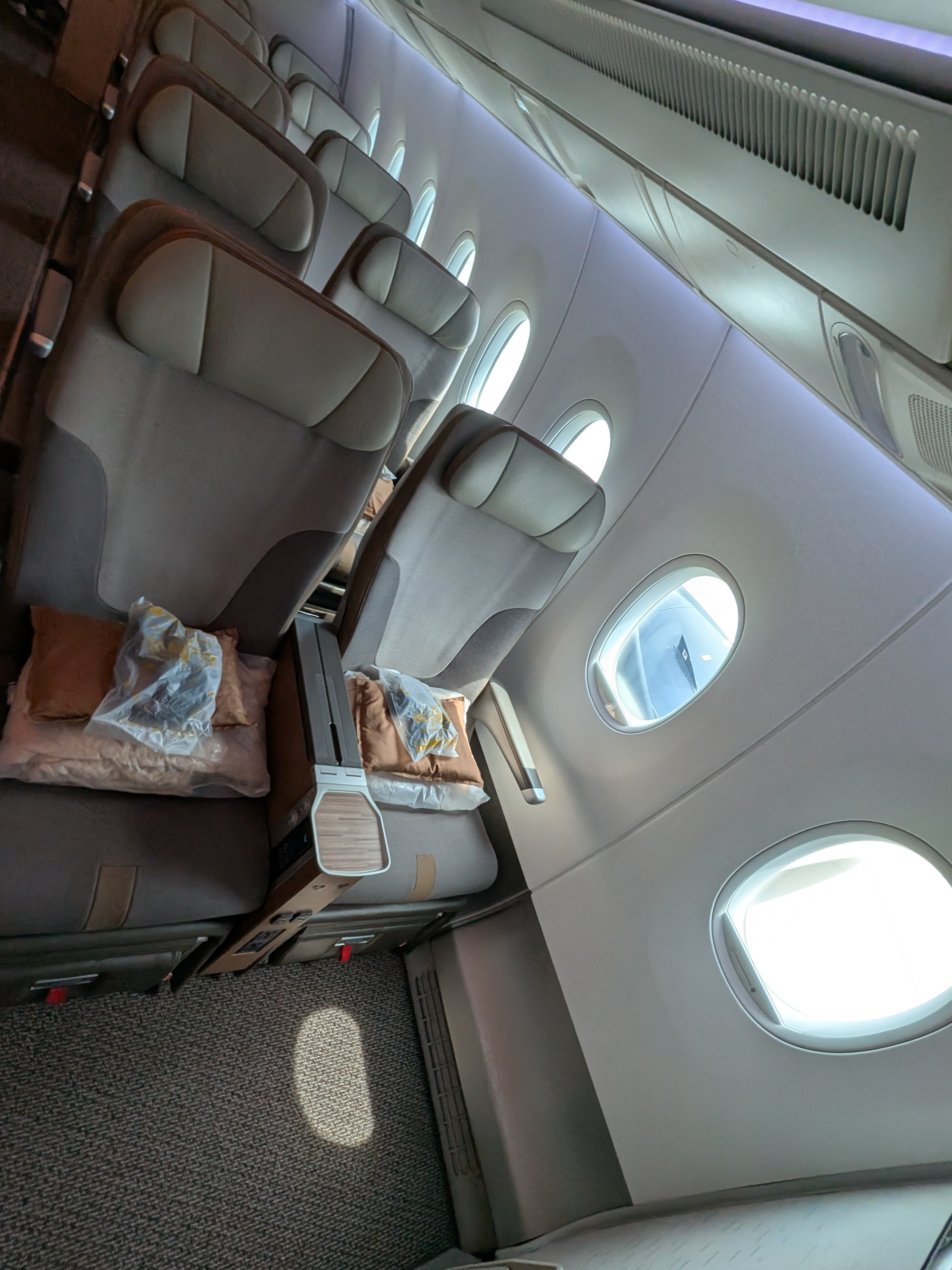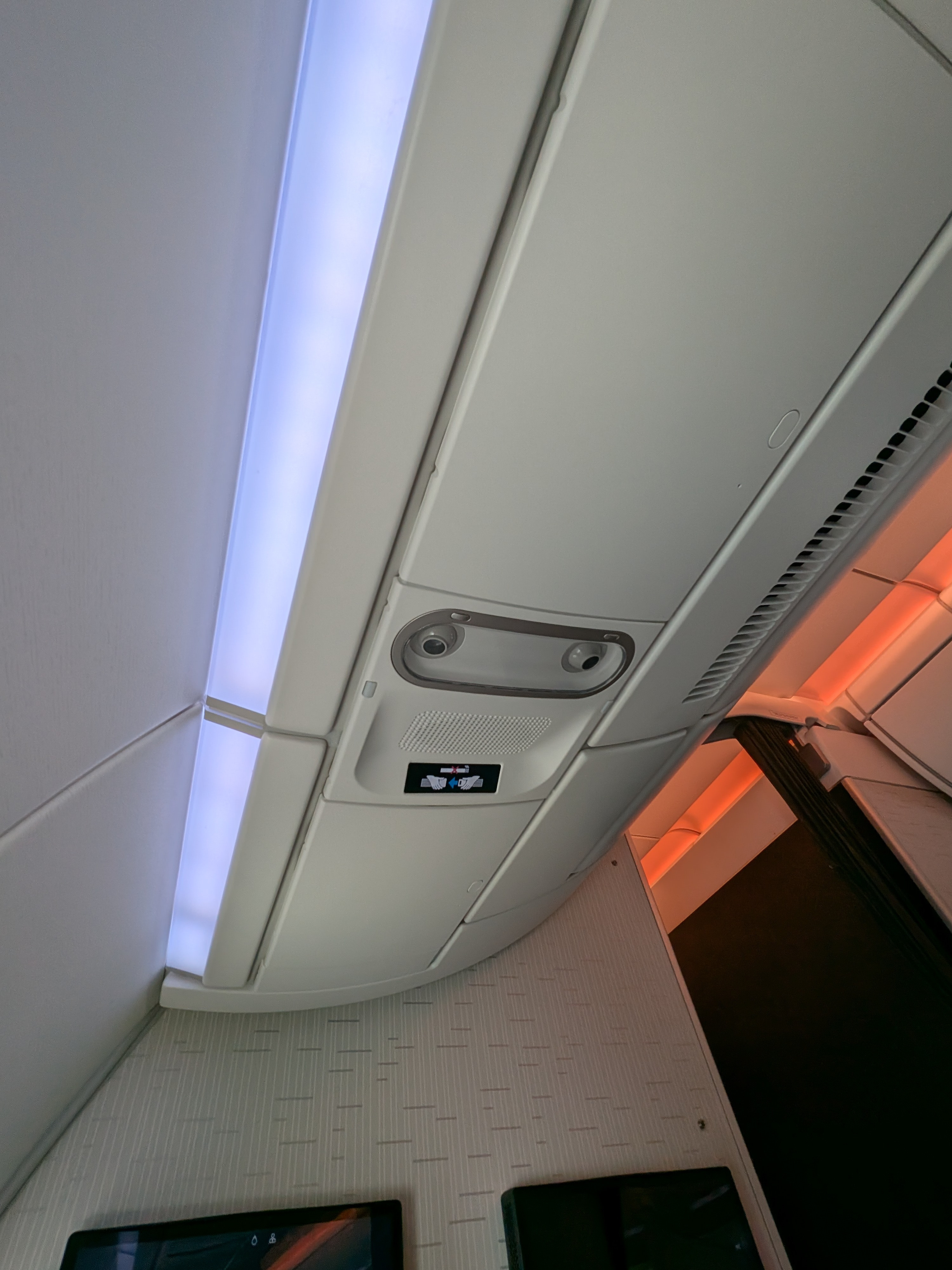 There's so little coverage of Starlux's product on this forum that I'll try to fill it out a bit. I was in the Premium Economy bulkhead, which had no storage during takeoff and landing, but at least had nice bright video monitors mounted on the bulkhead wall.