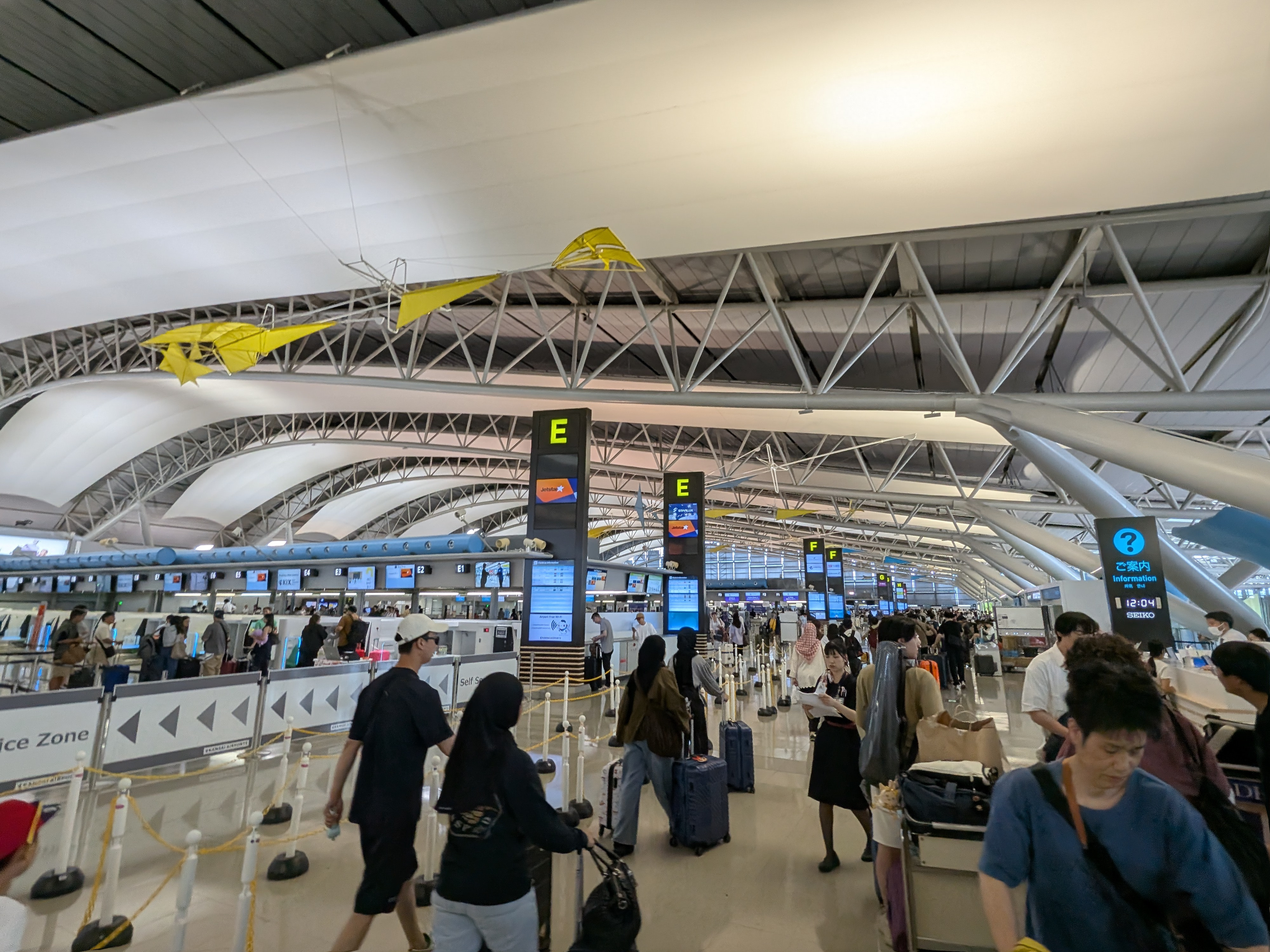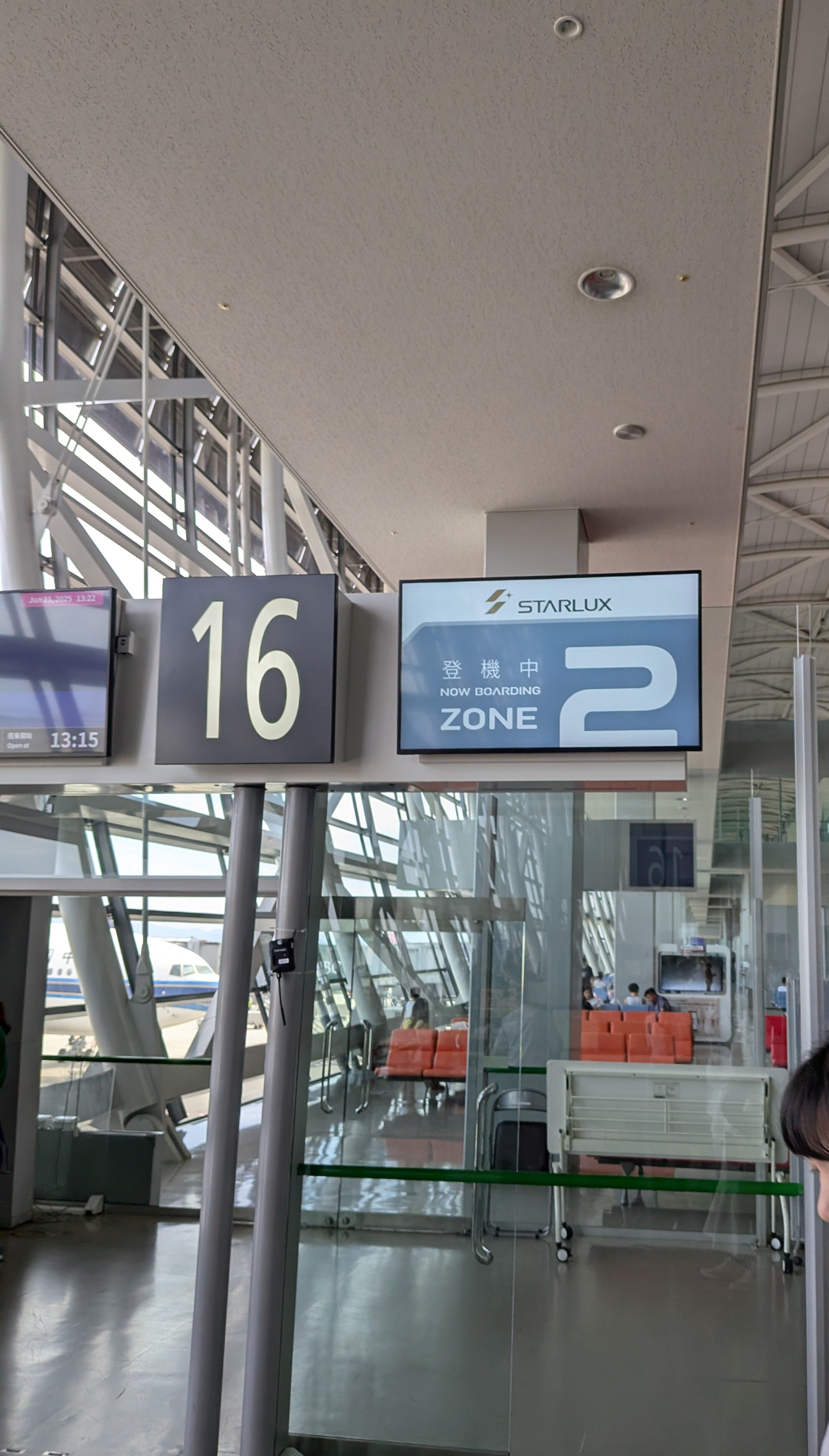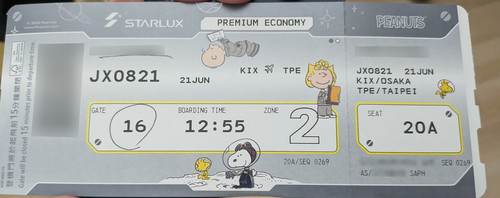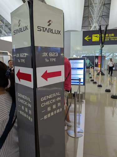 Starlux did not have special checkin lines for Premium Economy, so I went and got in line for Economy check-in. I had not noticed the little sticker above the arrow that said JX 823; I was booked on JX 821 and they ended up pulling me out of the line and checking me in separately, because they were about to close checkin for my flight and the line wasn't moving.
