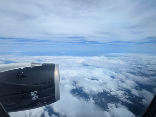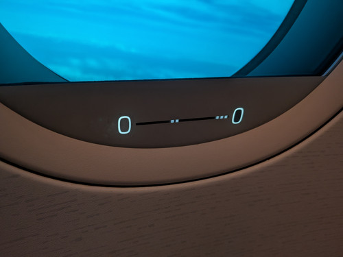 This is my first time seeing these new A350 windows with the automatic dimmer, and they're a marked improvement over what the 787 has. Not only is it much faster, but also the LED indicators show both the current target darkness as well as the progress the window has made towards that darkness level, so that you know whether you've already keyed in the value you want and are just waiting for the tint to catch up, or if you need to adjust it more. They're still slower than a physical blind, but for the ability to look out the window without waking everyone around me, I like them. They also get really dark on the lowest setting.