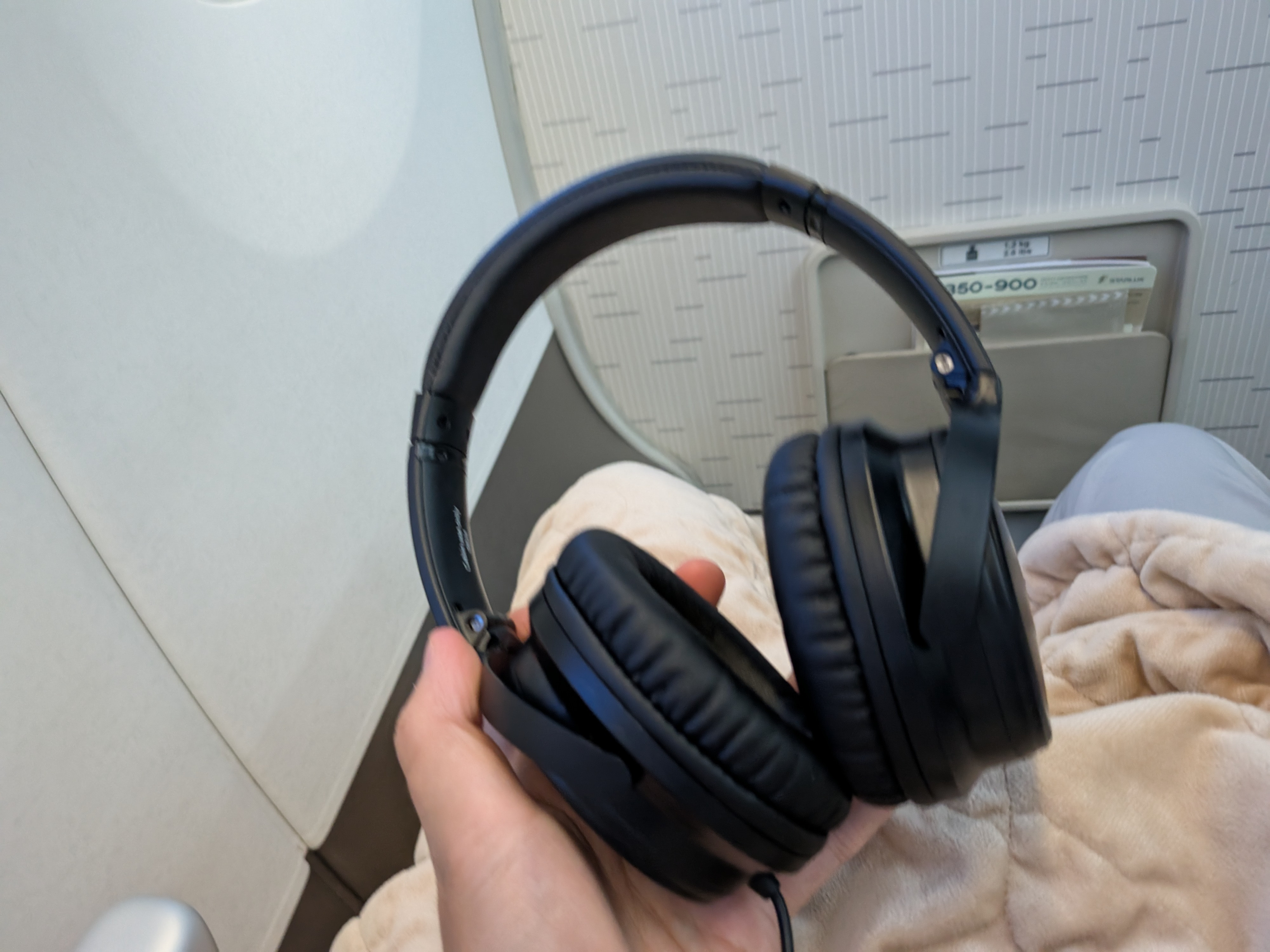 Some okay overear headphones were provided (better than Qatar's First class headphones, at least, in that both ears worked). The IFE selection was okay, though the English selection was not on the level of Qatar, Emirates, or most US carriers. There was free wifi for Premium Economy passengers, though, which didn't activate until we were 10k feet in the air, but was fairly reliable once connected.