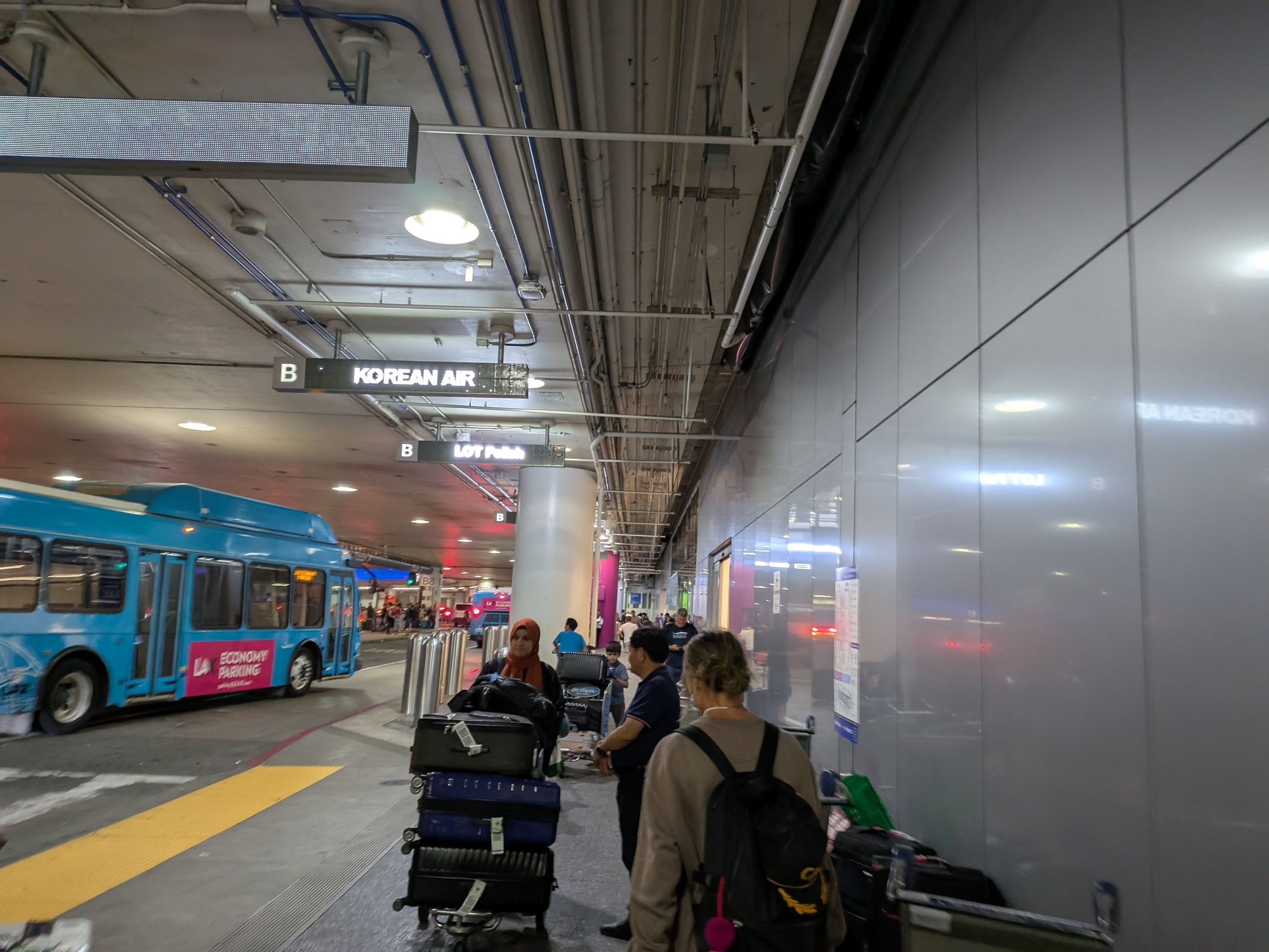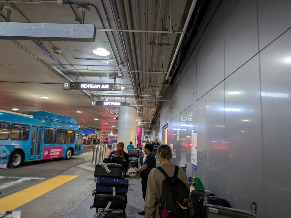 9:19pm. I made it to the curb 9 minutes after the cabin door opened. That was even faster than Hong Kong (but to be fair to HK I didn't have Global Entry there). I didn't even have time to remember how much I dislike LAX's smog-filled pickup loop you get dumped out on.