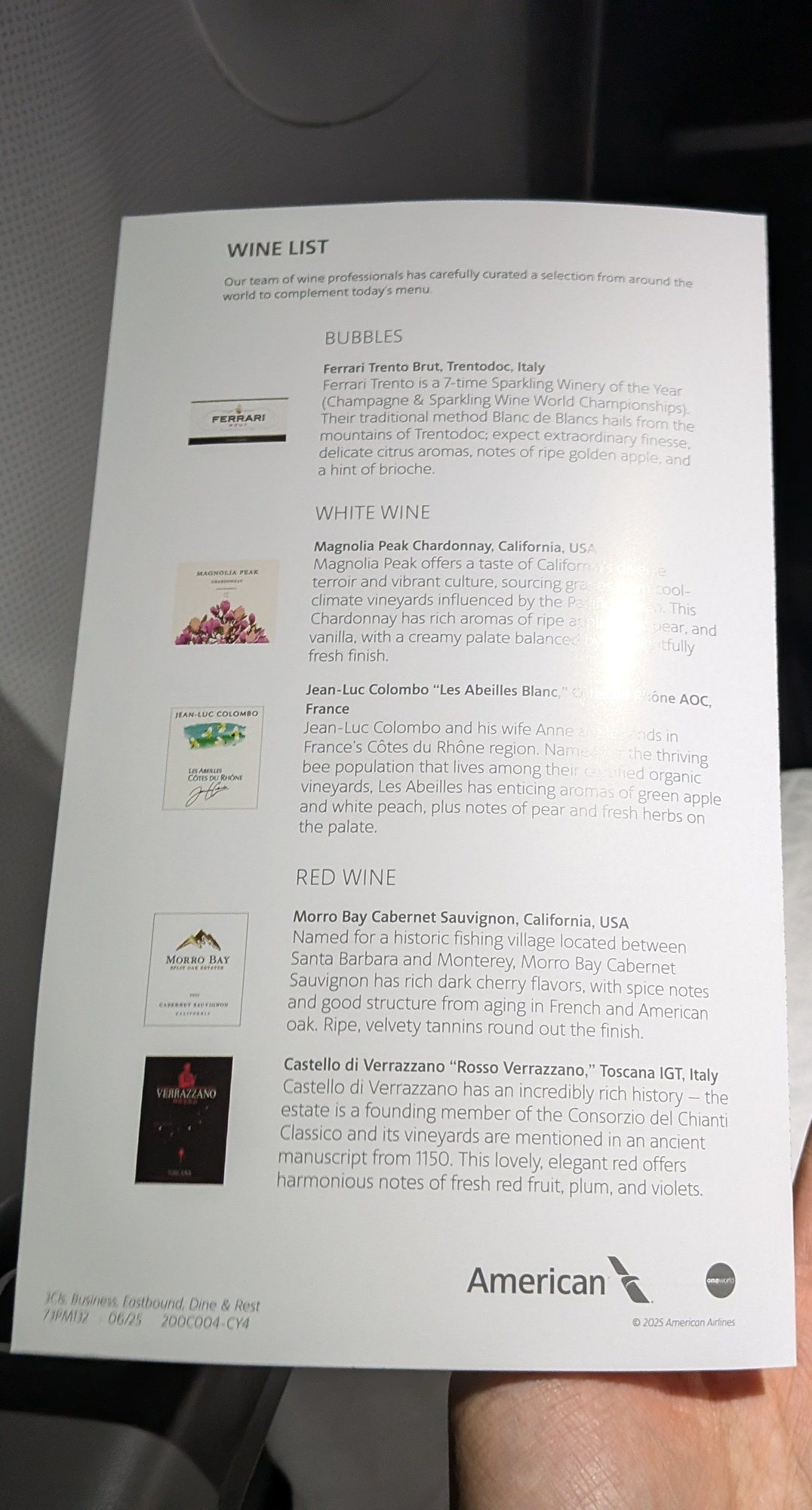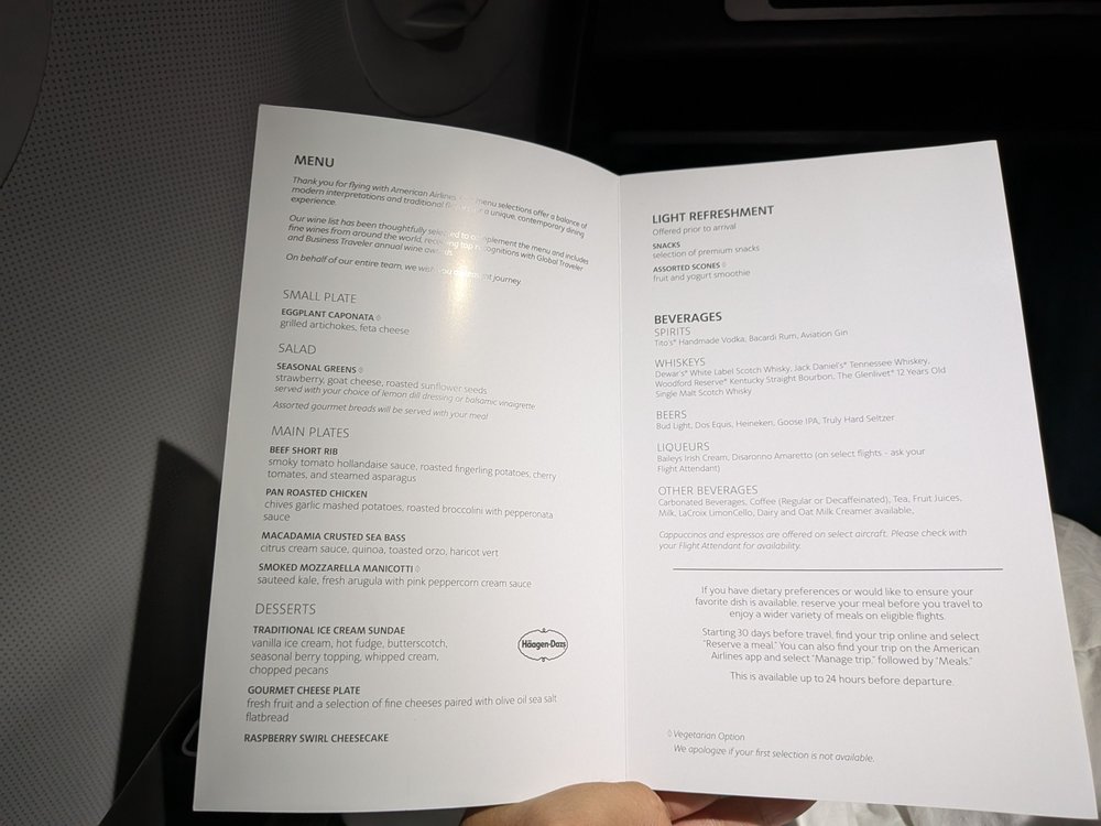 FAs passed out menus before takeoff. Apparently even economy class gets some food on these transcons, which is actually rather nice of AA.