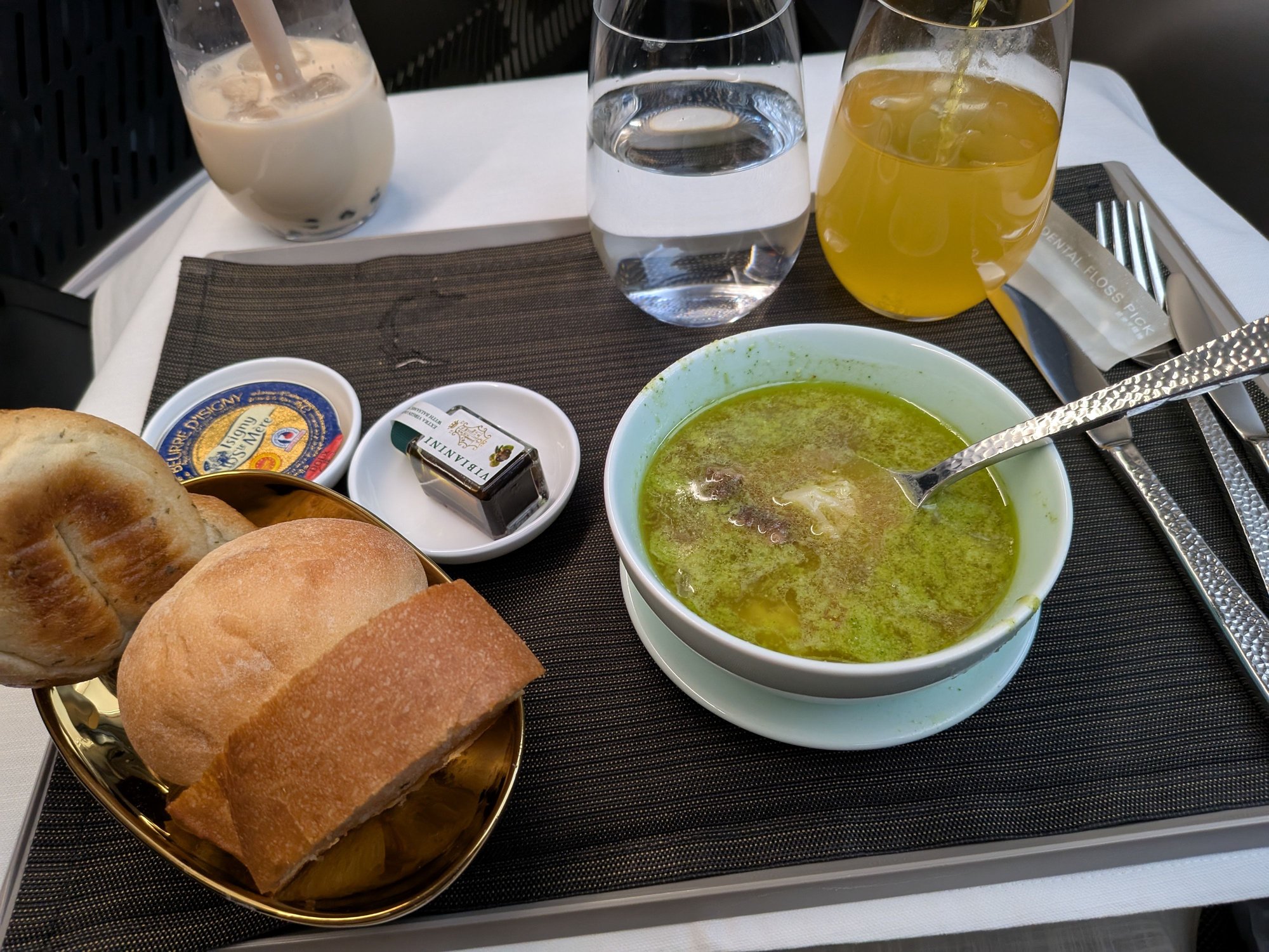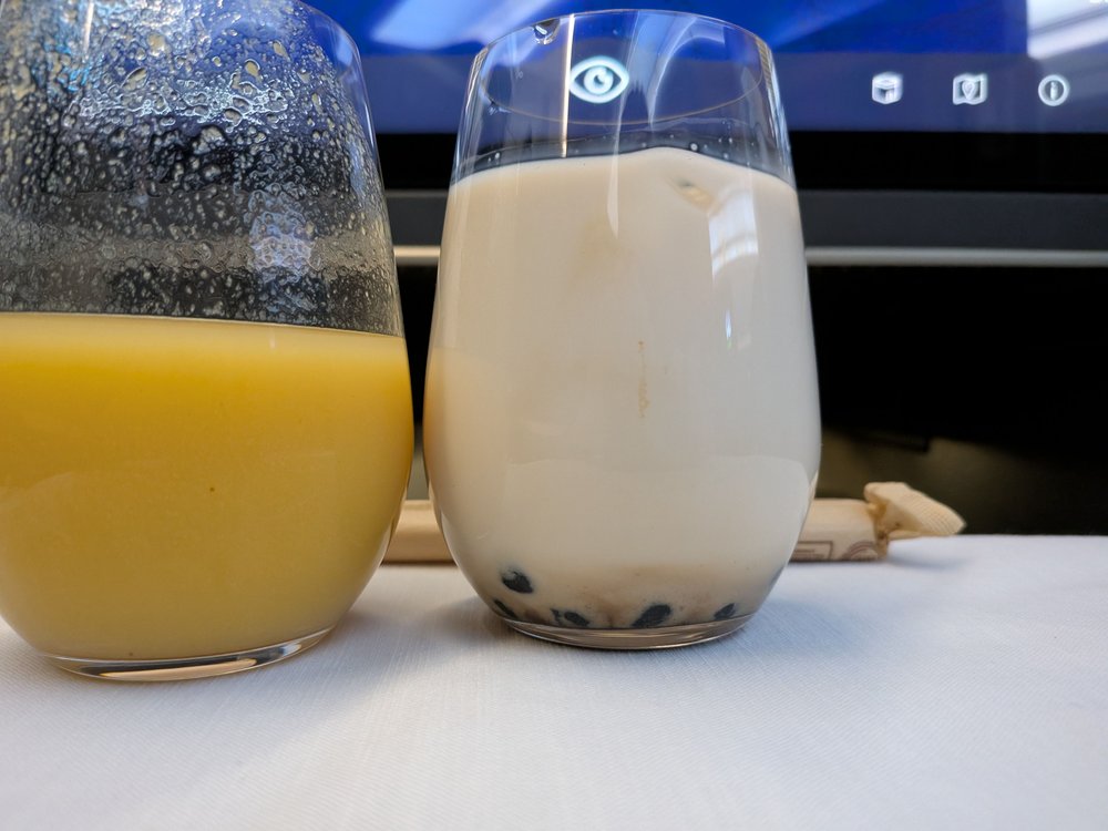An FA came over to tell me that someone else in the cabin had ordered some boba but fell asleep before it was ready, so they asked if I wanted it instead. I of course accepted, and I must say, this might be the best bubble tea I've ever had.