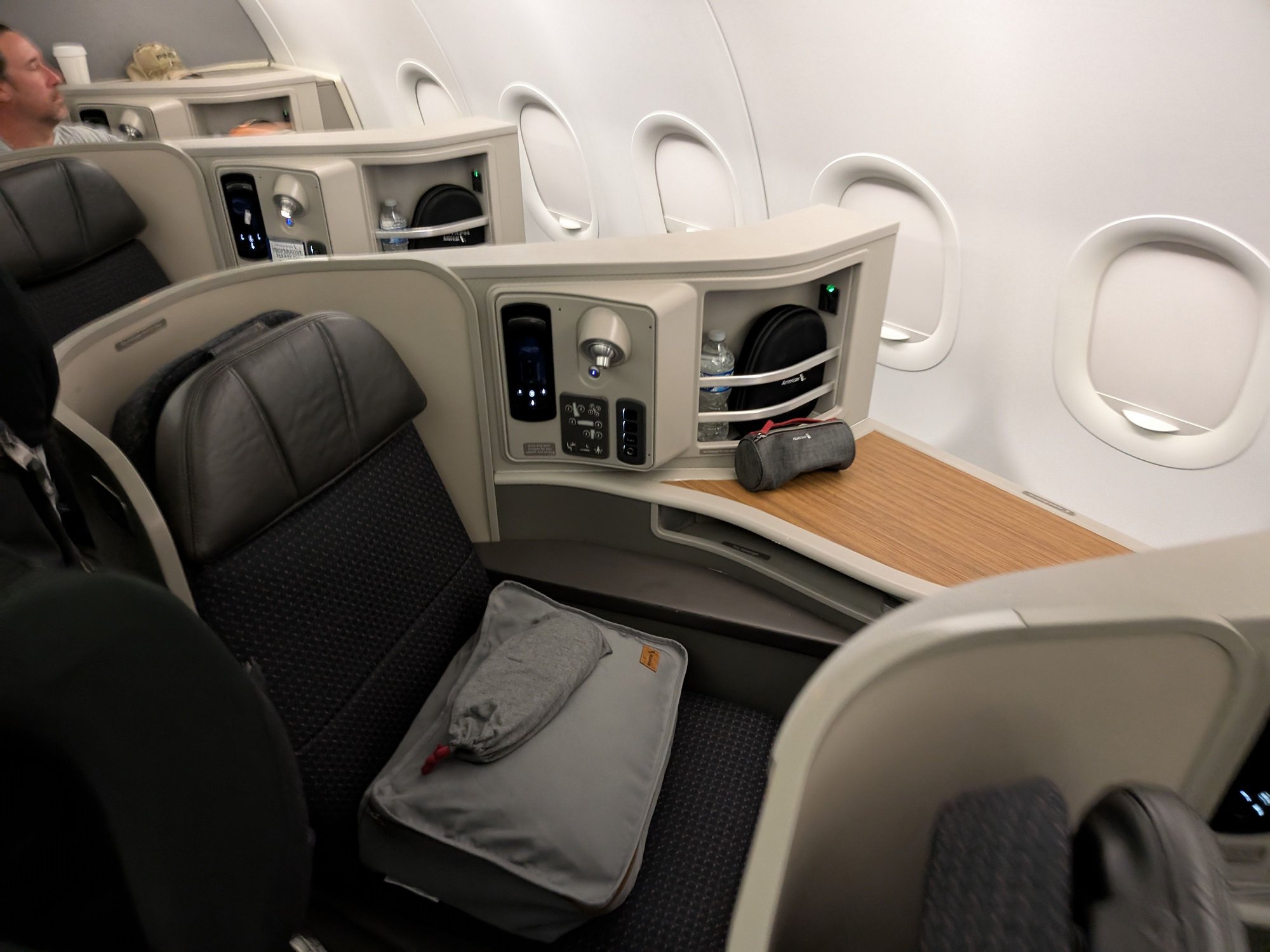 Instead, I get to be in the 2-2 Flagship Business, which is still a lie-flat seat on a domestic flight, so I'm happy with that. I spent 40k AAdvantage miles on this flight, and I'm desperately trying not to think of the fact that my Qatar First flight to Hong Kong was only 10k miles more.