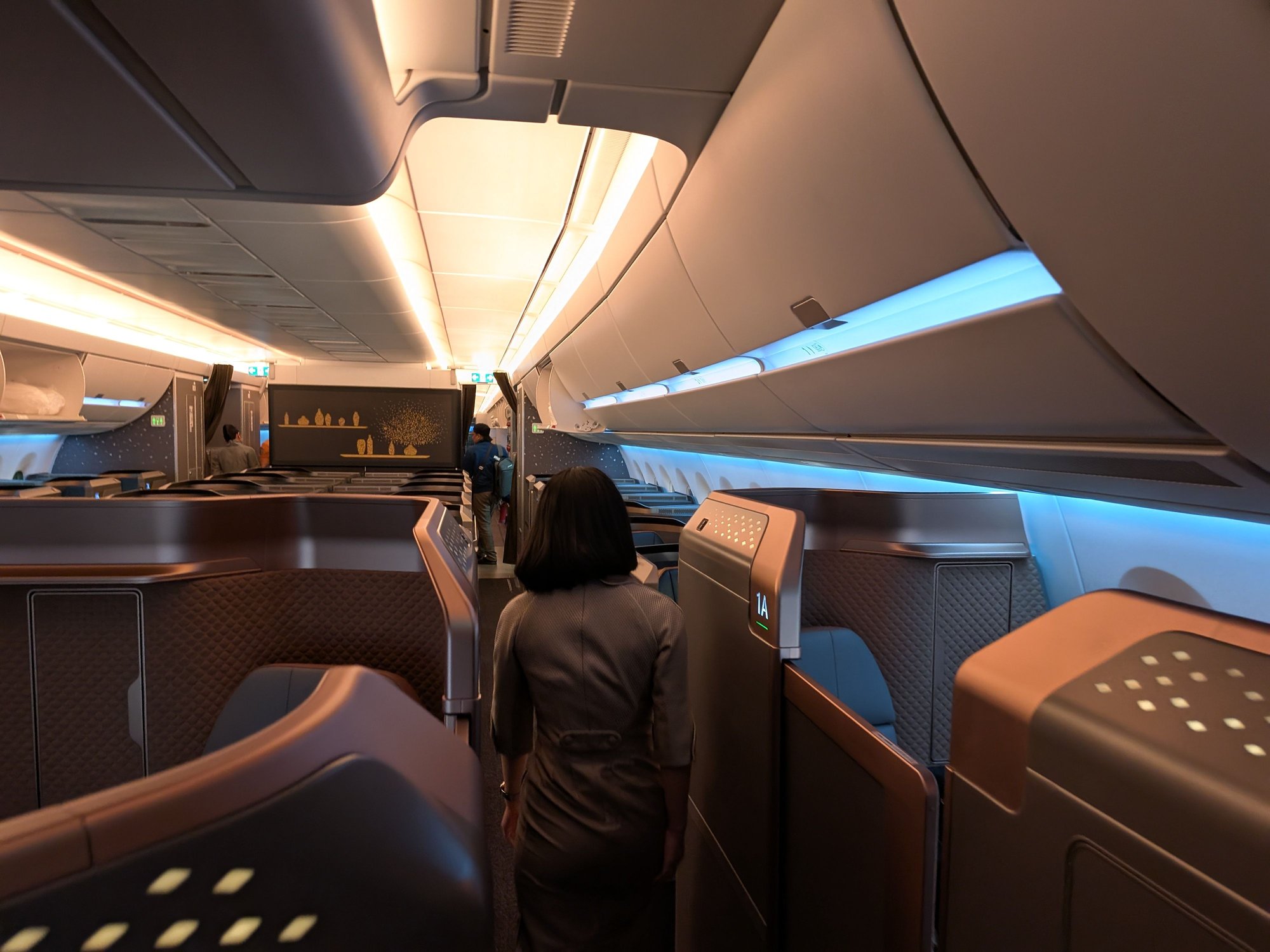 I chatted with one of the flight attendants later who told me that there were 0 first class pax and only 4 people in all of business class.
