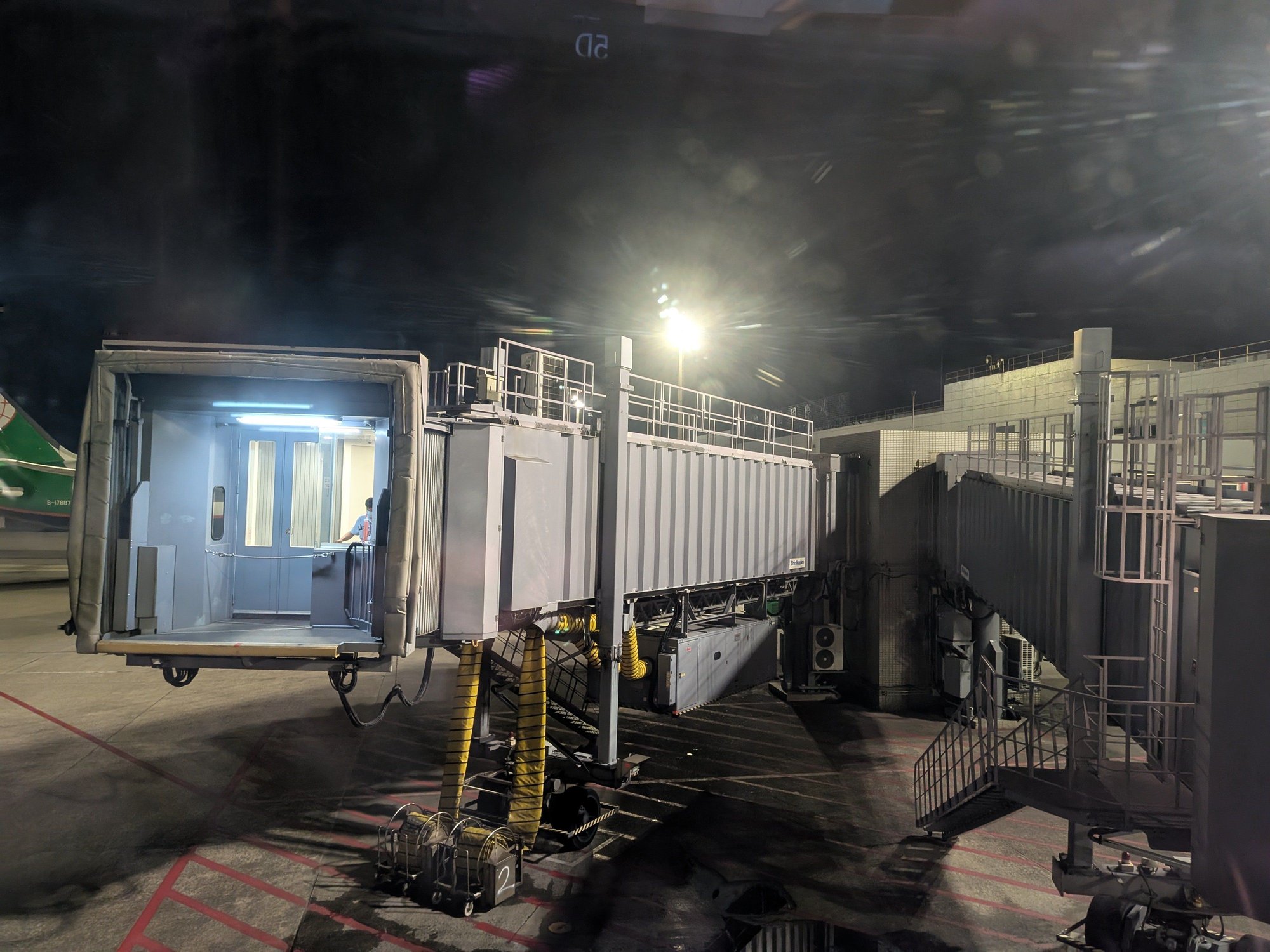 They checked my boarding pass at the top of the stairs by the gate, and then directed me to use the elevator while everyone else was asked to pick up their luggage and haul it down the stairs themselves. Was this because I'm in business class? Not sure, but it feels like TPE could use some escalators here.