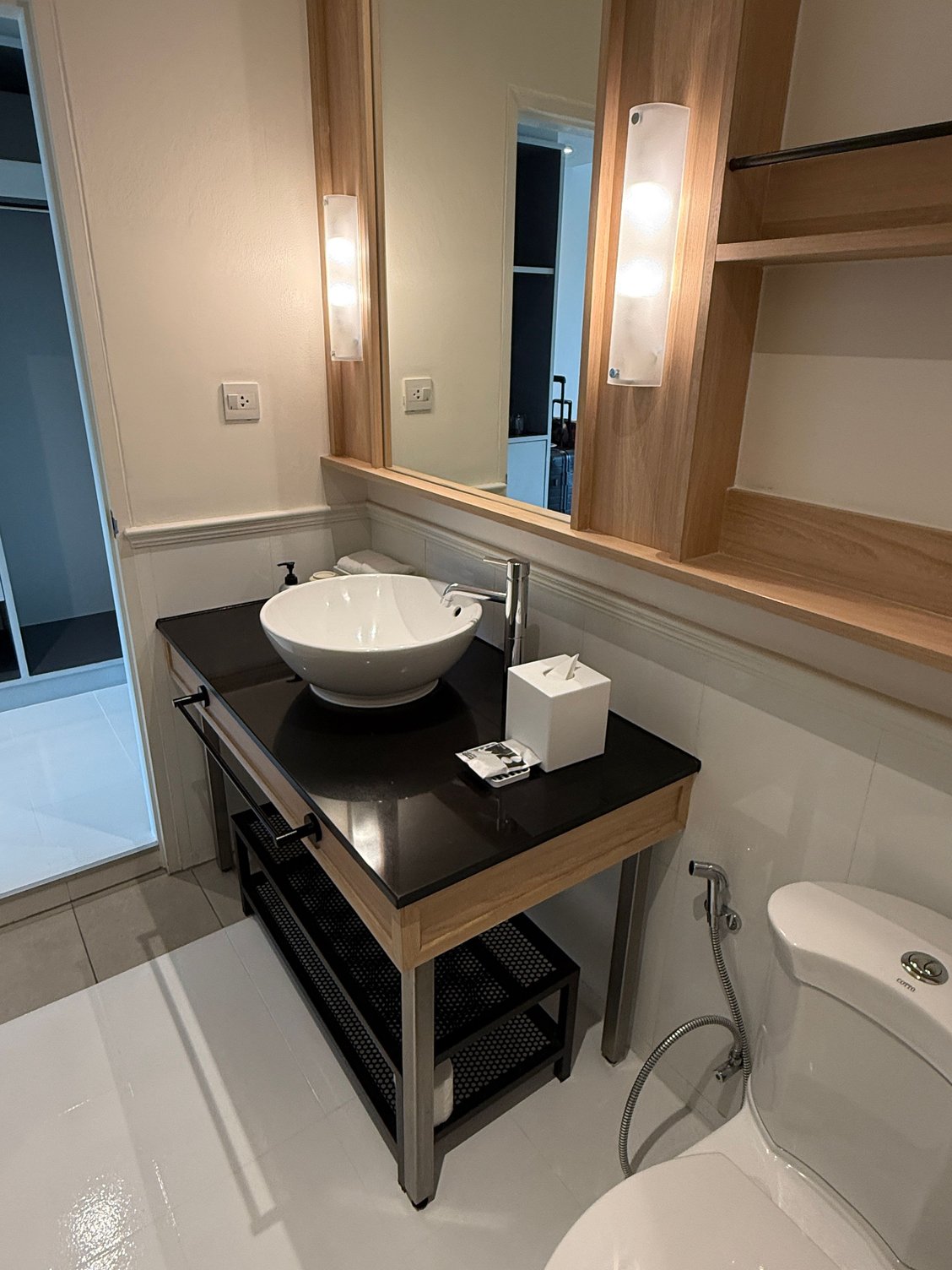 - We had originally been slated to arrive later in the evening so we just booked this property to try it out as we only needed one night in BKK before heading to Hua Hin the next morning. We arrived about 1.30PM and the room was ready. It was not the easiest place to pick out for the taxi driver and he of course was not familiar with it but we sorted it out easy enough. Just keep your eyes open. There will be no door person so be prepared to get your own bags in the front and while there is a ramp to the right of the entrance, there is a big flower pot blocking the path to the front door so you need to enter via the coffee/juice entrance and it can be a little tight if people are in line getting drinks etc, like there was when we entered.