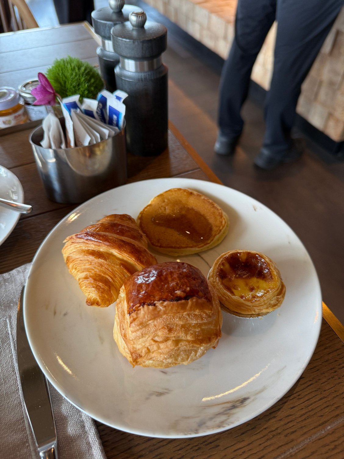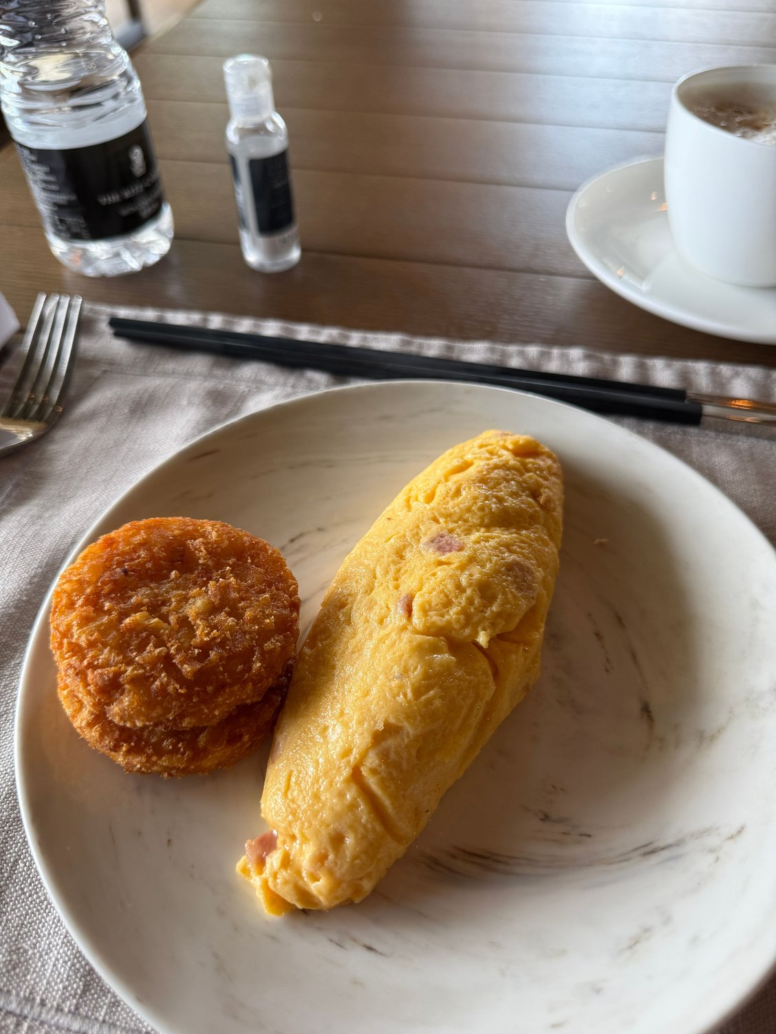 - Breakfast was good and met my expectations - good omelet and hashbrowns, good pancakes and egg tarts, they could improve from machine coffee (but it was fine)