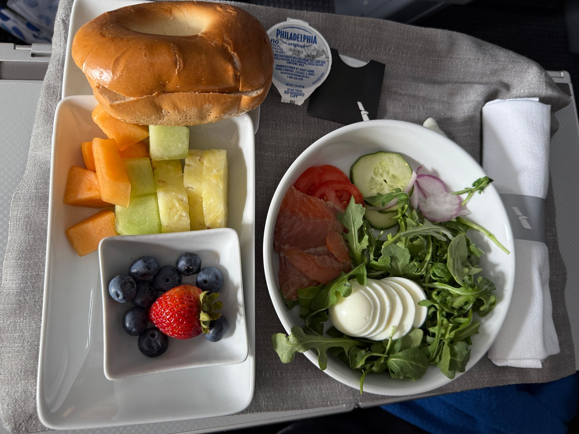 PHL-CUN - 7/4/25 - Breakfast - Smoked Salmon Platter, Smoked salmon served with eggs, cucumber, tomato, arugula, red onion and capers