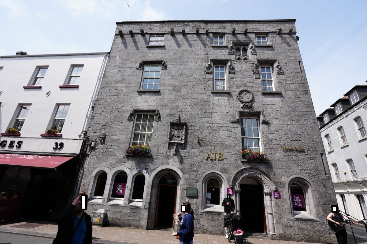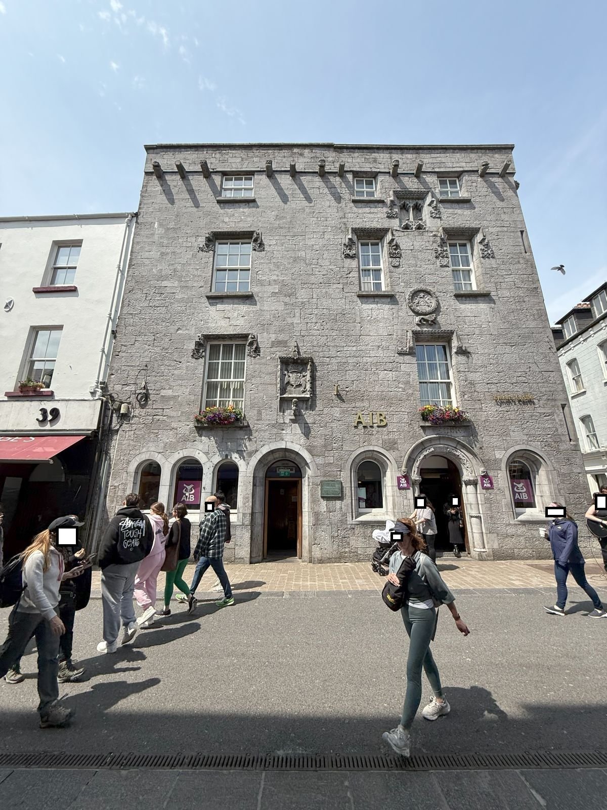 The actual destination for the day was Galway. Lynch's Castle was highlighted in the travel guide. I'll keep it short. When I got there, I was quite surprised. It was an old, small building. Inside, it's now a bank, nothing special at all.