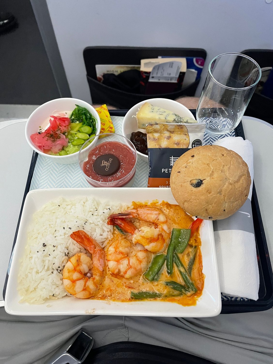 Prawn Curry on the return from Budapest last night. Rice was dry but rest of the curry was good. I was surprised at how much I liked the Vegetarian Poke Bowl starter.