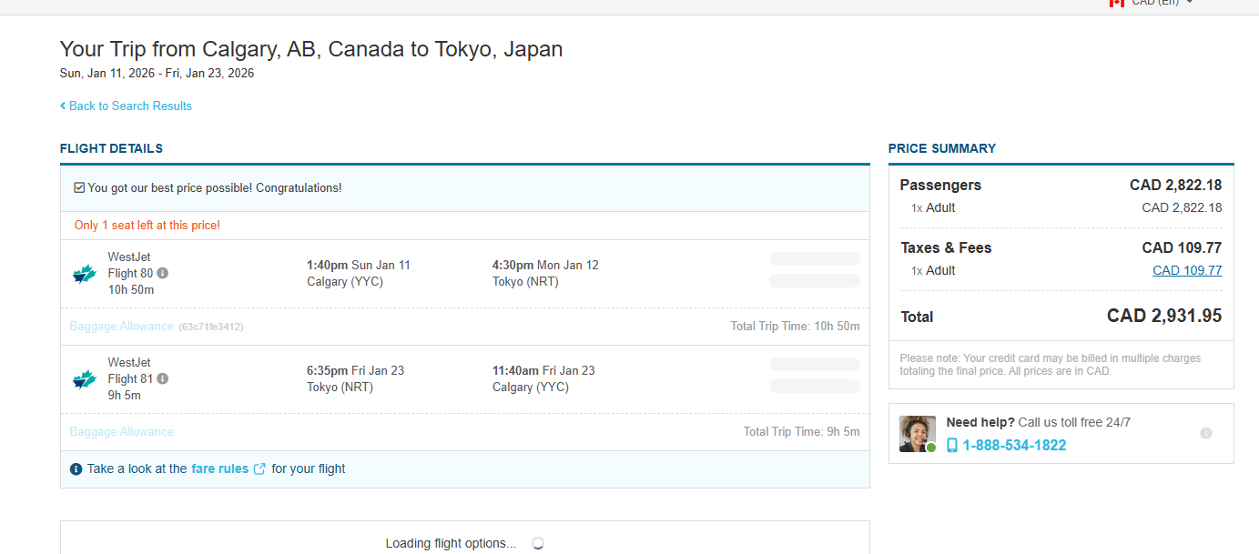 (fare gone) Ws: Yyc-nrt $2,900 cad