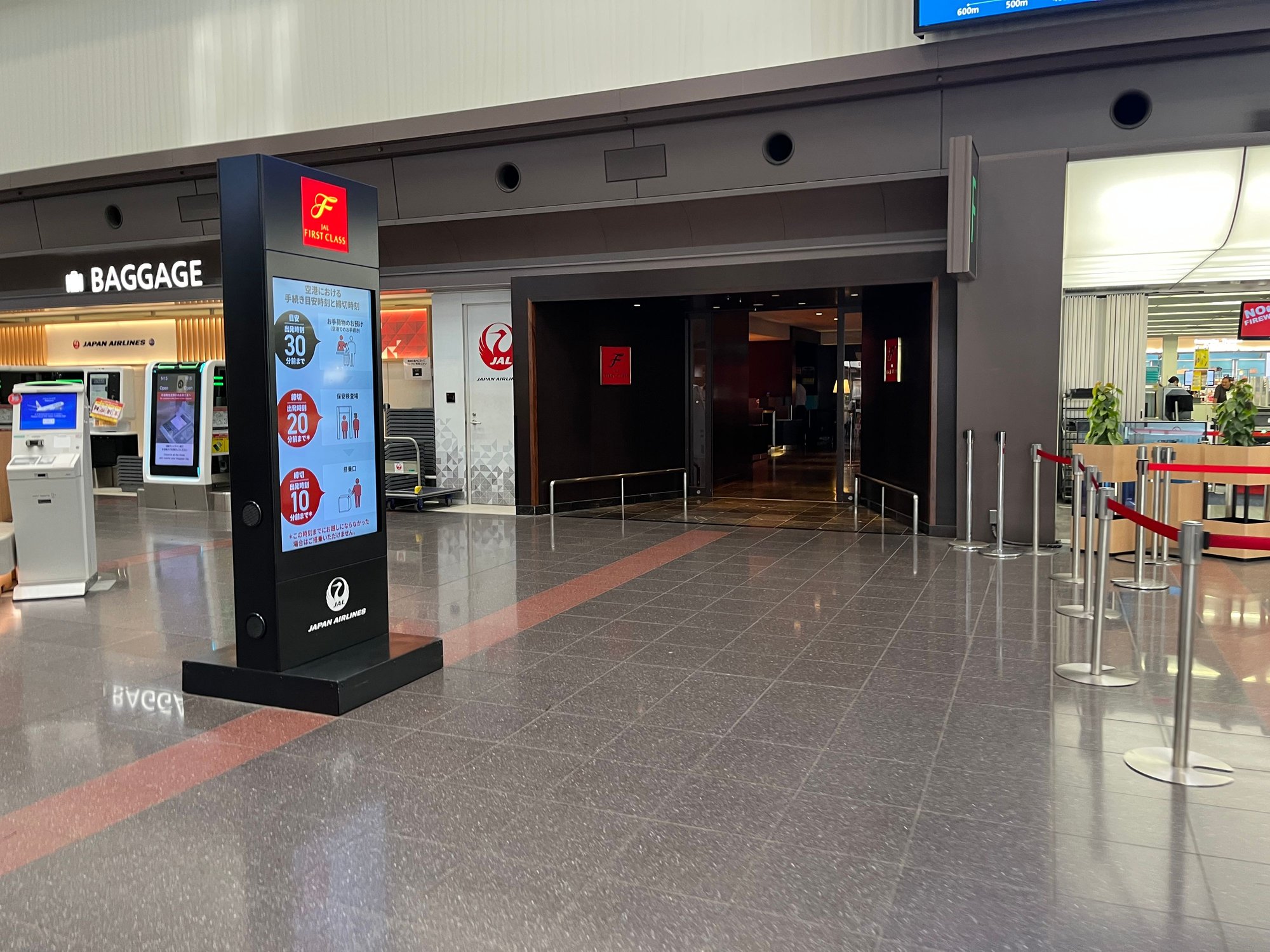 Eventually I returned landside and found the JAL first class checkin. And from there went through the security into the lounge precinct.