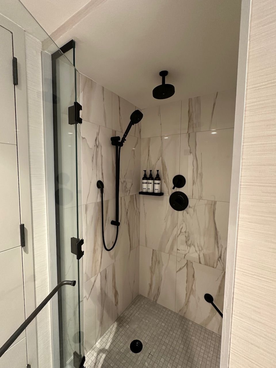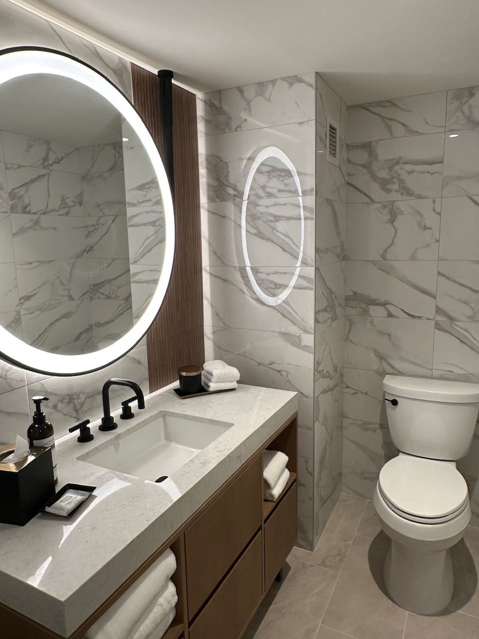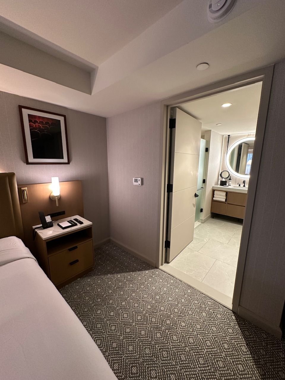 Renovations look great compared to the Crowne Plaza days. Room could use additional lighting in the wetbar, closet, and shower areas.