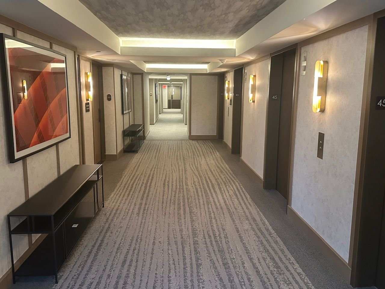 Recent visit. Photos of lobby areas and a one-bdrm suite on the 45th floor.
