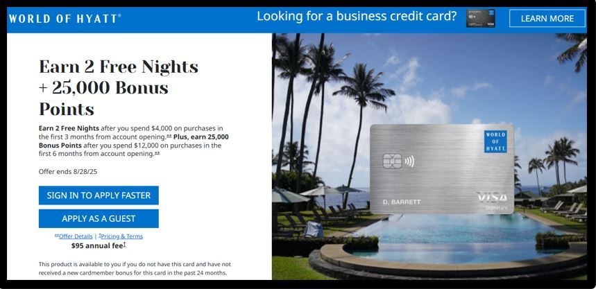 World of Hyatt (personal) Credit Card, New SUB Summer 2025