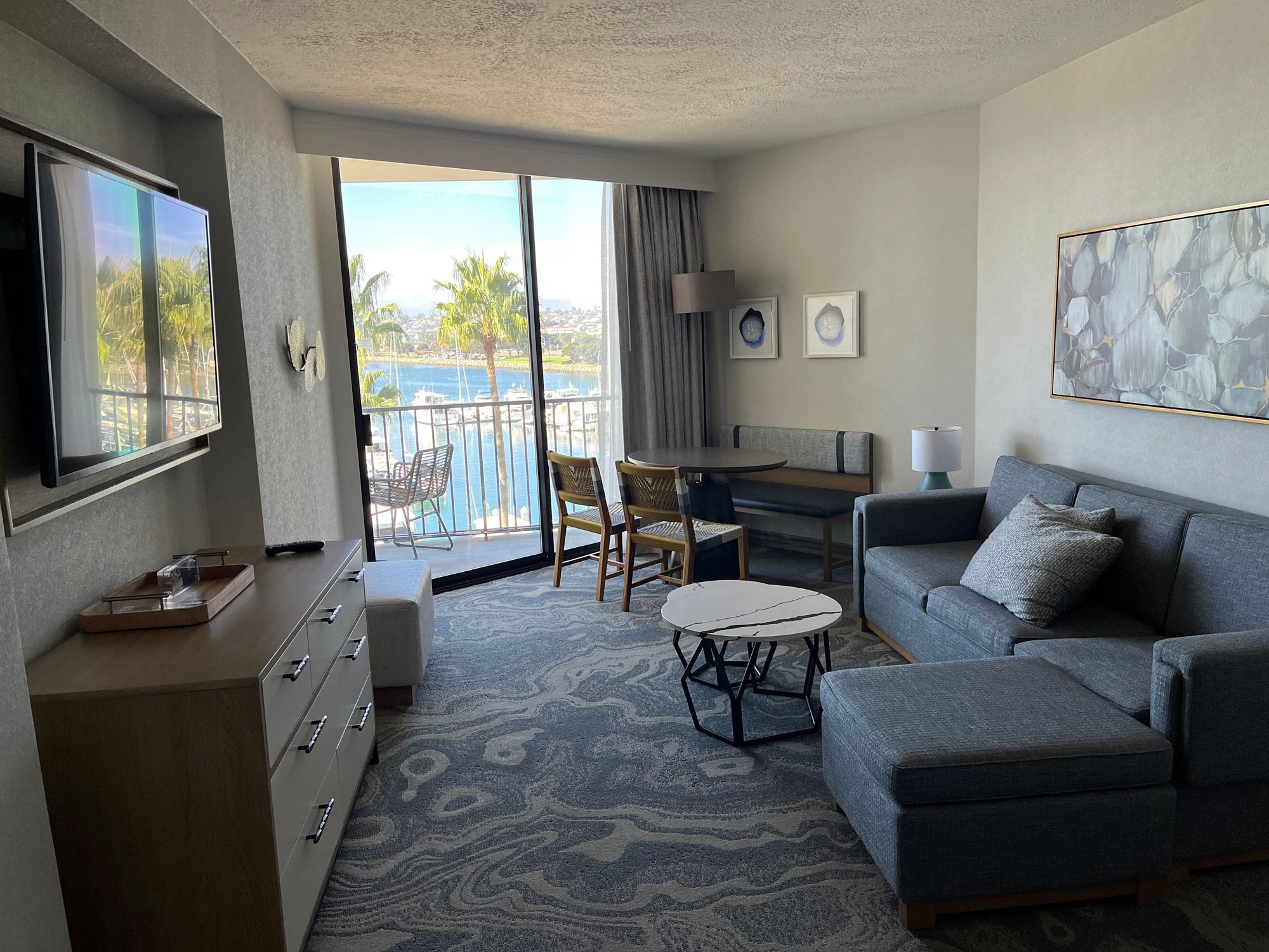 I used a Marriott Bonvoy 75-night Annual Choice Benefit 40K Free Night Award (FNA) and a Nightly Upgrade Award (NUA), The NUA successfully cleared to a "Renovated, Marina Suite, Suite, 1 King, Sofa bed, Marina view, Marina Tower, Balcony." The suite was a good size, nicely renovated, comfortable, and well-maintained. The marina view was wonderful. Good use of an FNA and NUA.