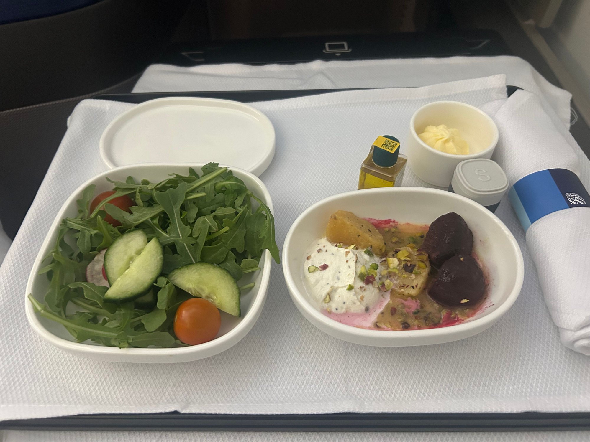 Had a nice Singaporean breakfast in the SQ lounge beforehand. Great wine / champagne and halfway decent food + a comfy seat on the 767. Beet starter was ace. Very kind crew across the board. I always prefer the lunchtime departure.