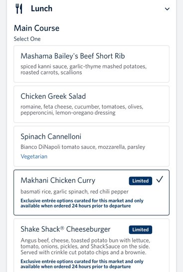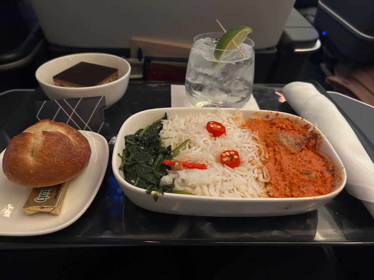 Curry was predictably fine. The bread was warmed. Snack basket about 90 minutes before landing.