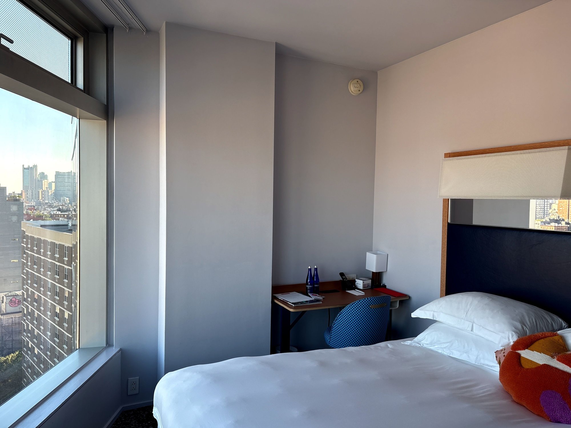 I think I got a little over-excited at some of the reports in this thread and other Globalist member sites on how well elites were treated. I booked a one night stay last (Friday) night for 25K points; not too bad as the cash rates were in the $500+ range. It's slow season here in NYC, although it is NYU move-in weekend (which we've learned to circle on our calendars as the traffic in the neighborhood can be a bit messed up). I tried reaching out to the hotel via email and social media before my stay but didn't get any responses. I noted prior to the day of my stay that they were showing availability in most of their room catagories, including suites. I was really hoping for a king corner and was disapointed to be put into a Deluxe King on the 15th floor. Granted, the award books into a Queen Standard, but the Delxue King is just one level above the Standard King. Also, my room's door was directly outside of the elevators (as are most rooms on the eastern side). That being said, not facing Cooper Square/Third Avenue is a plus as facing east is much more quiet and there's very few high rise buildings in the East Village, Alphabet City, and the Lower East Side, so the views were pretty nice (I would have been very happy watching this year's 4th of July Fireworks here).