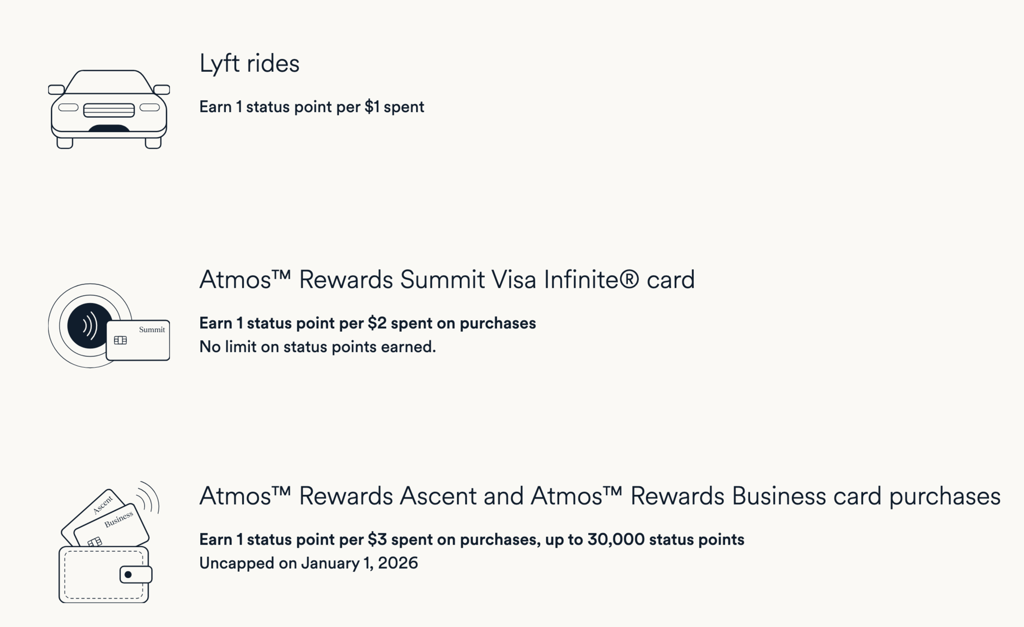 Here is one example. The Atmos Summit card does not earn 1