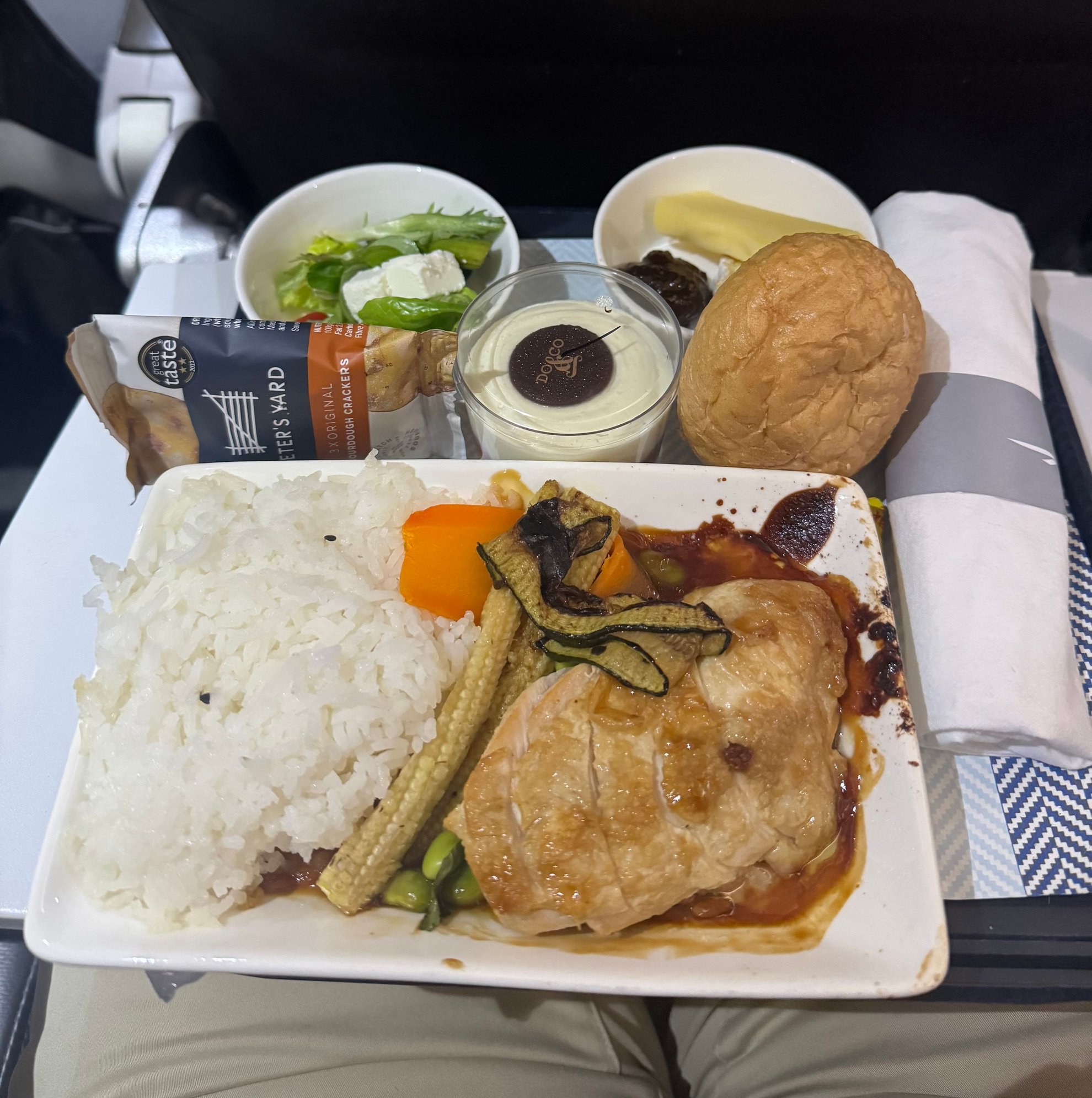 AGP-LHR yesterday. I'd ordered an HNML meal but it wasn't loaded, for reasons unknown. Instead I had the teriyaki chicken, which was nice but could have used more sauce. The other option was a pasta dish, no third cold option was offered (no menus given out - band 3 flight so they should have been).