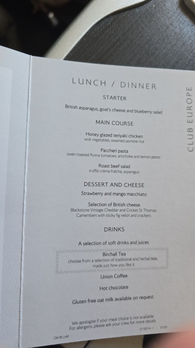 Same as the ARN route posted the other day it seems. Thought the chicken dish was excellent but could do with more sauce as it got quite dry towards the end.