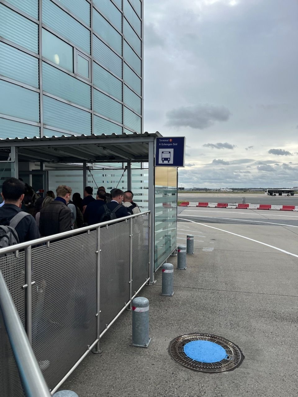 Add to that one bus at a time (there were 2 buses ahead) and the usual bus showing up 20 minutes after arrival and it was a full FRA experience.