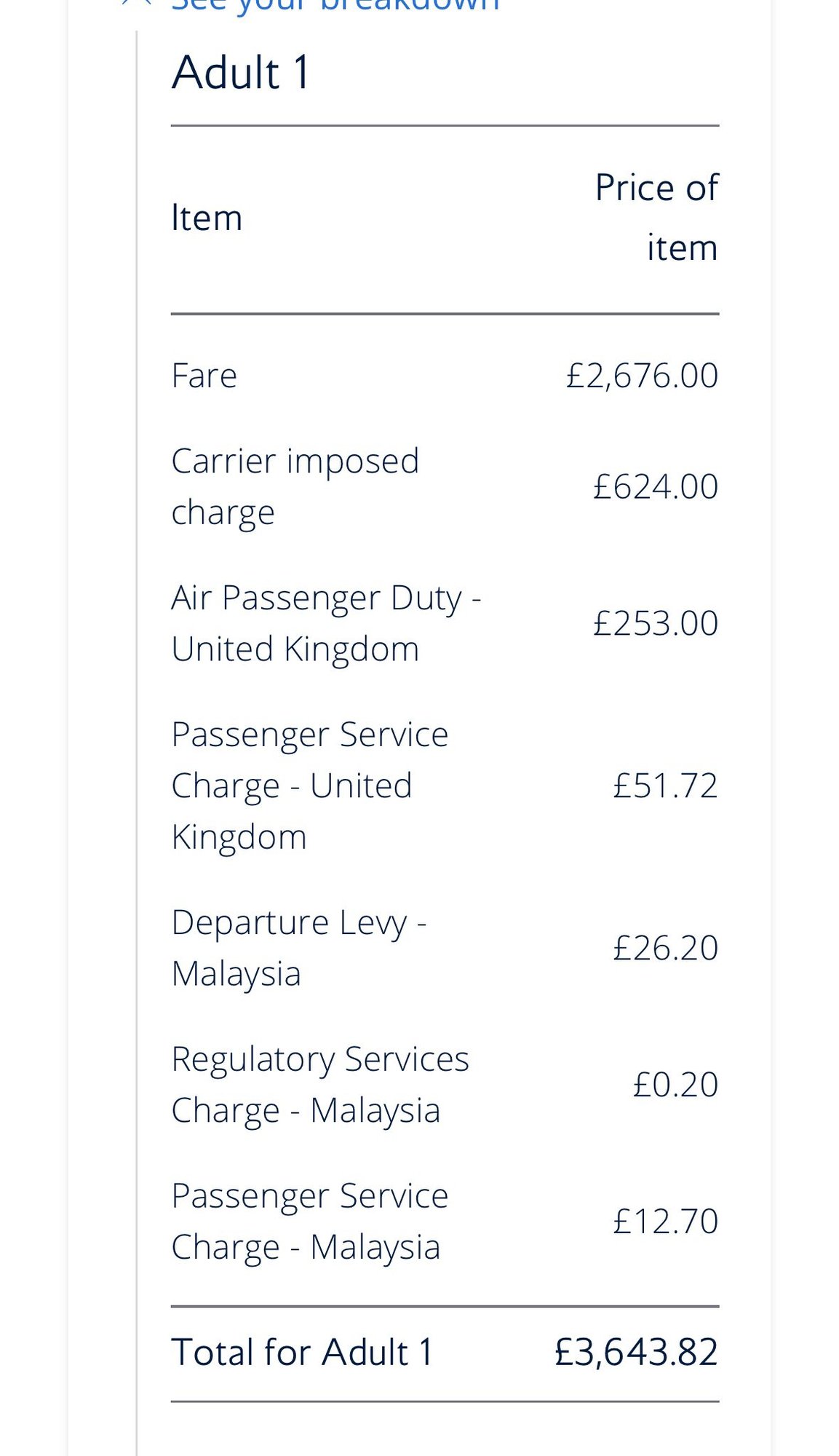 Here’s the fees if making a cash booking for the same route - doesn’t make sense to me as I’ve now paid £625pp round trip and there’s no combination of these which adds up to that: