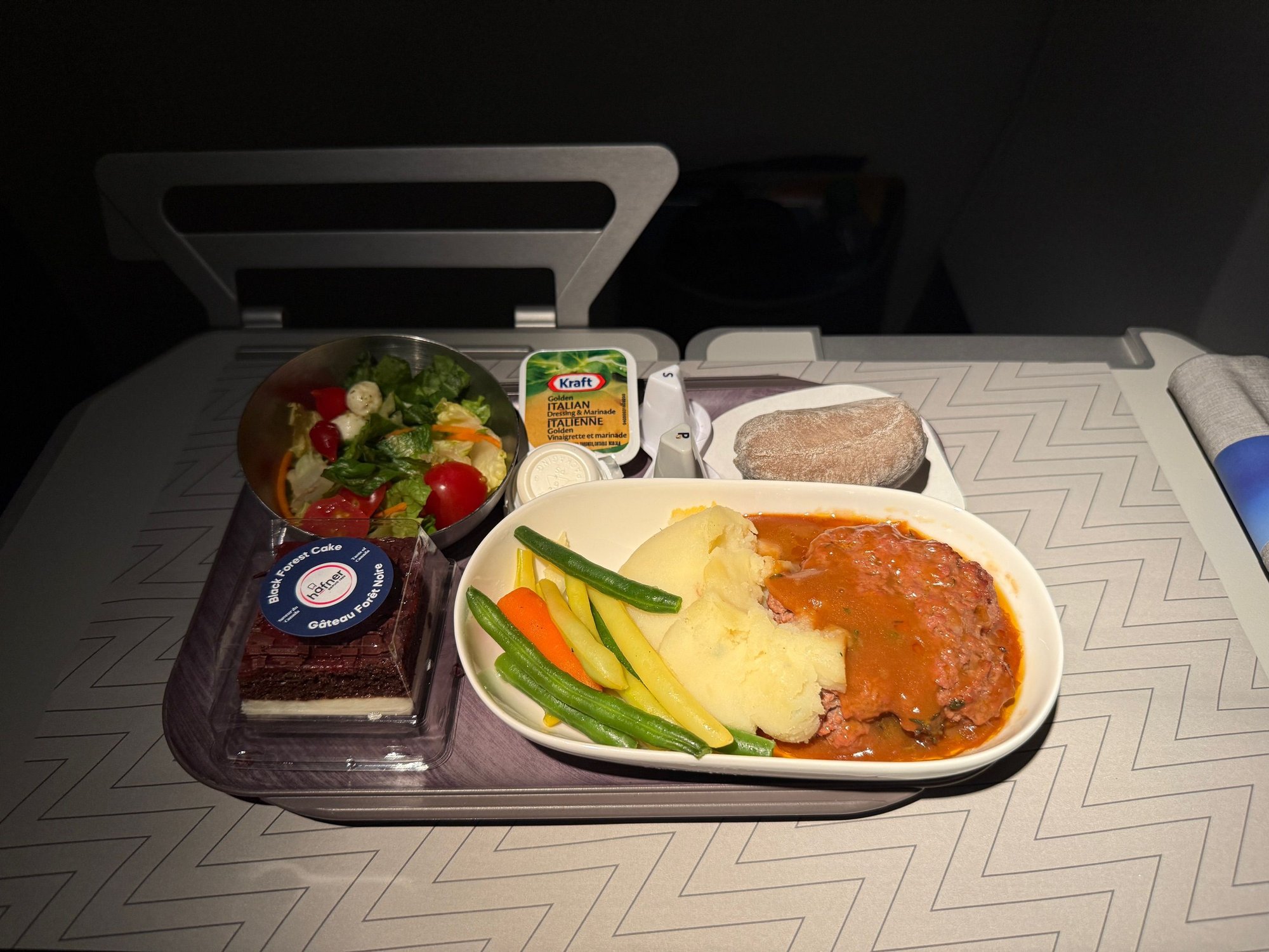 YYZ-YXE. Can't recall what the dish was called. Menus were offered. Late night flight so not a lot of interaction with the crew.