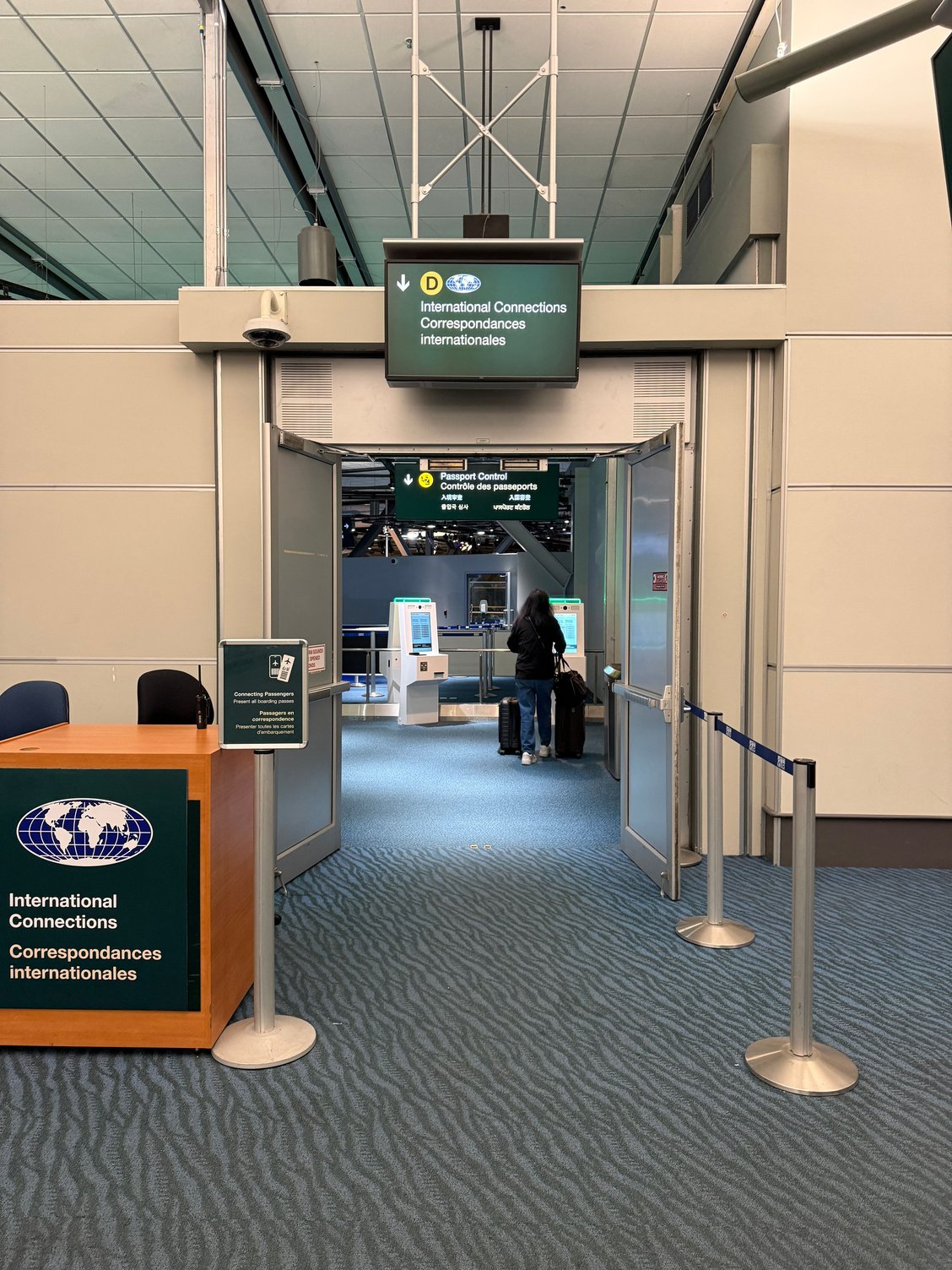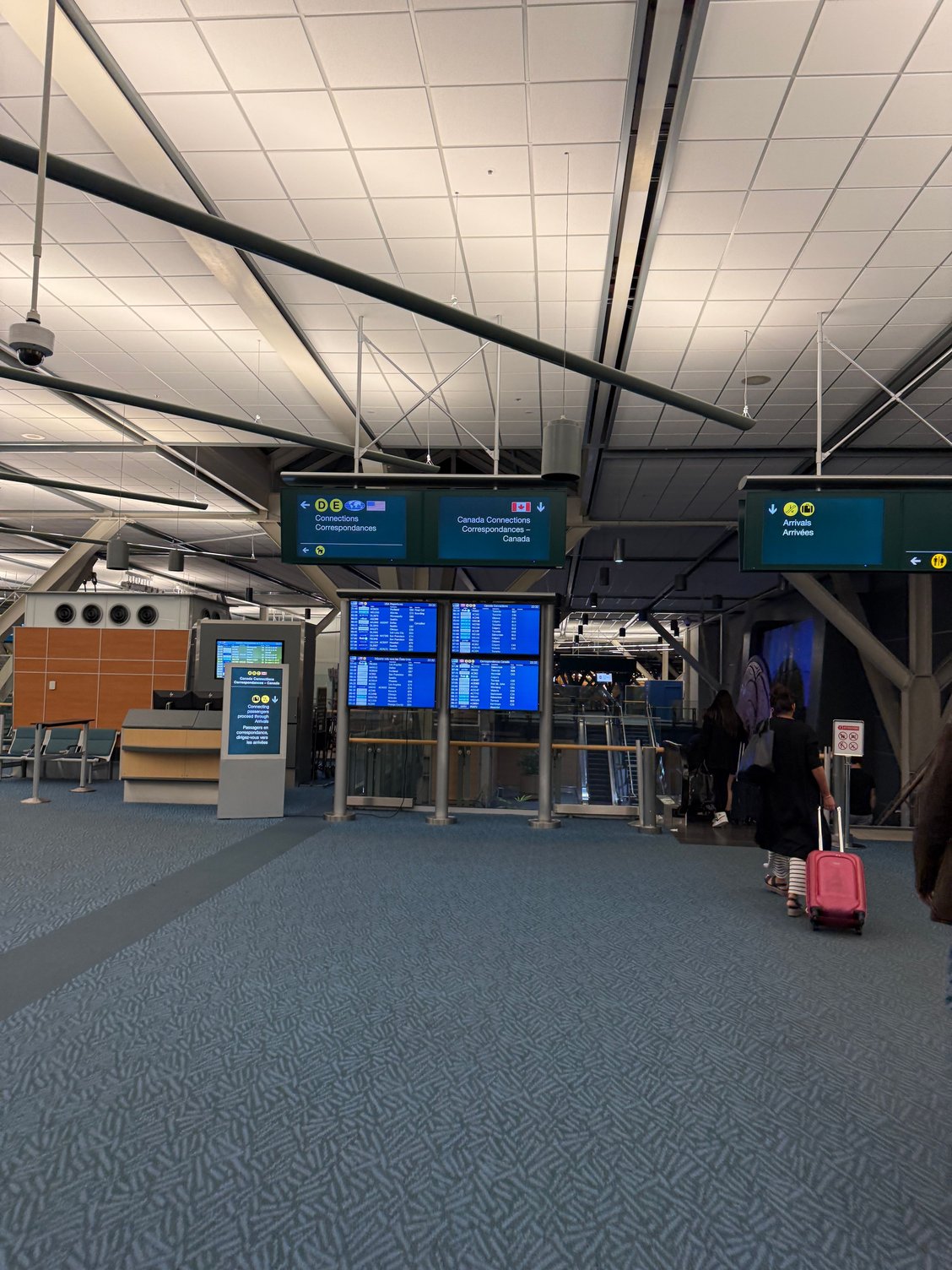 arrived, walked to central area where the international connections section is clearly visible. An agent asks where you’re going and you go to a kiosk (did arriveCAN so it was pretty quick) then a boarding pass scan for arriving and departing BP. Then stay to the right for US/EU flights and then go downstairs to departures!