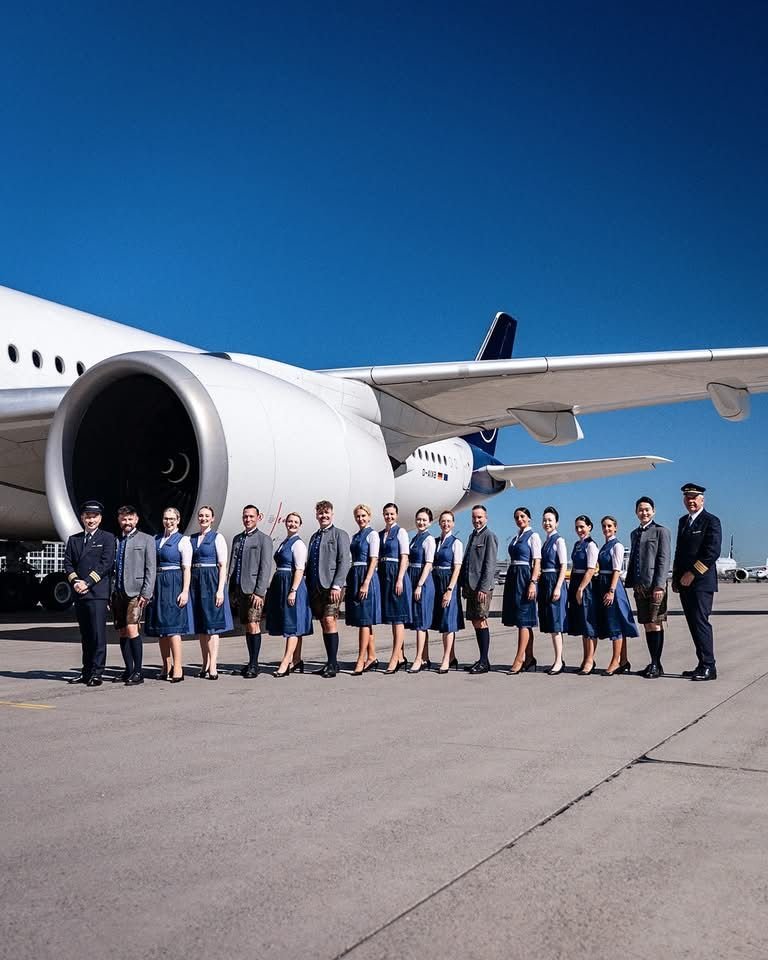 Lufthansa crew in Bavarian Tracht from Munich during Oktoberfest