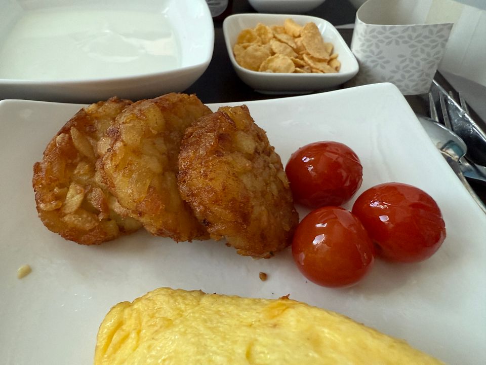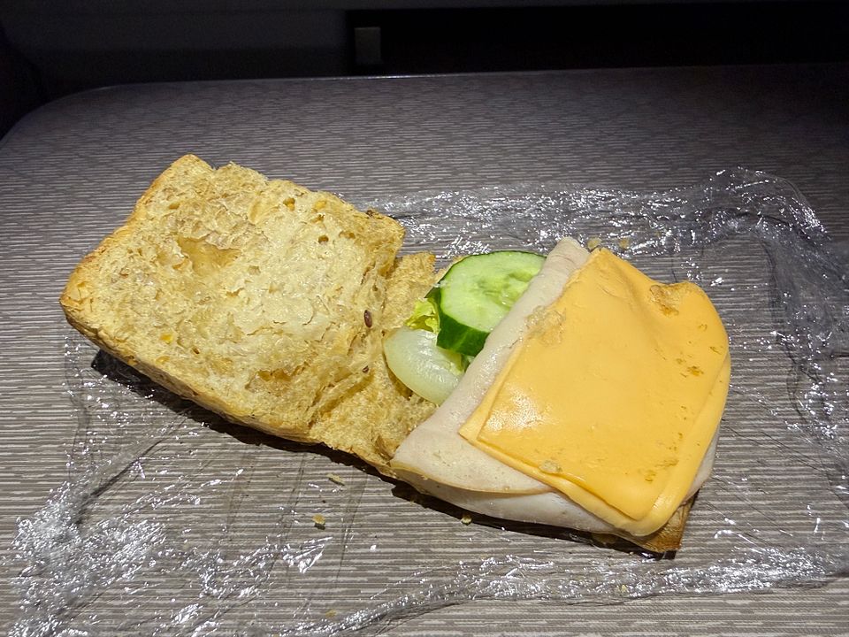 There is no formal menu description, but on top of the usual array of packaged snacks, two types of sandwiches were available in the galley between meals: