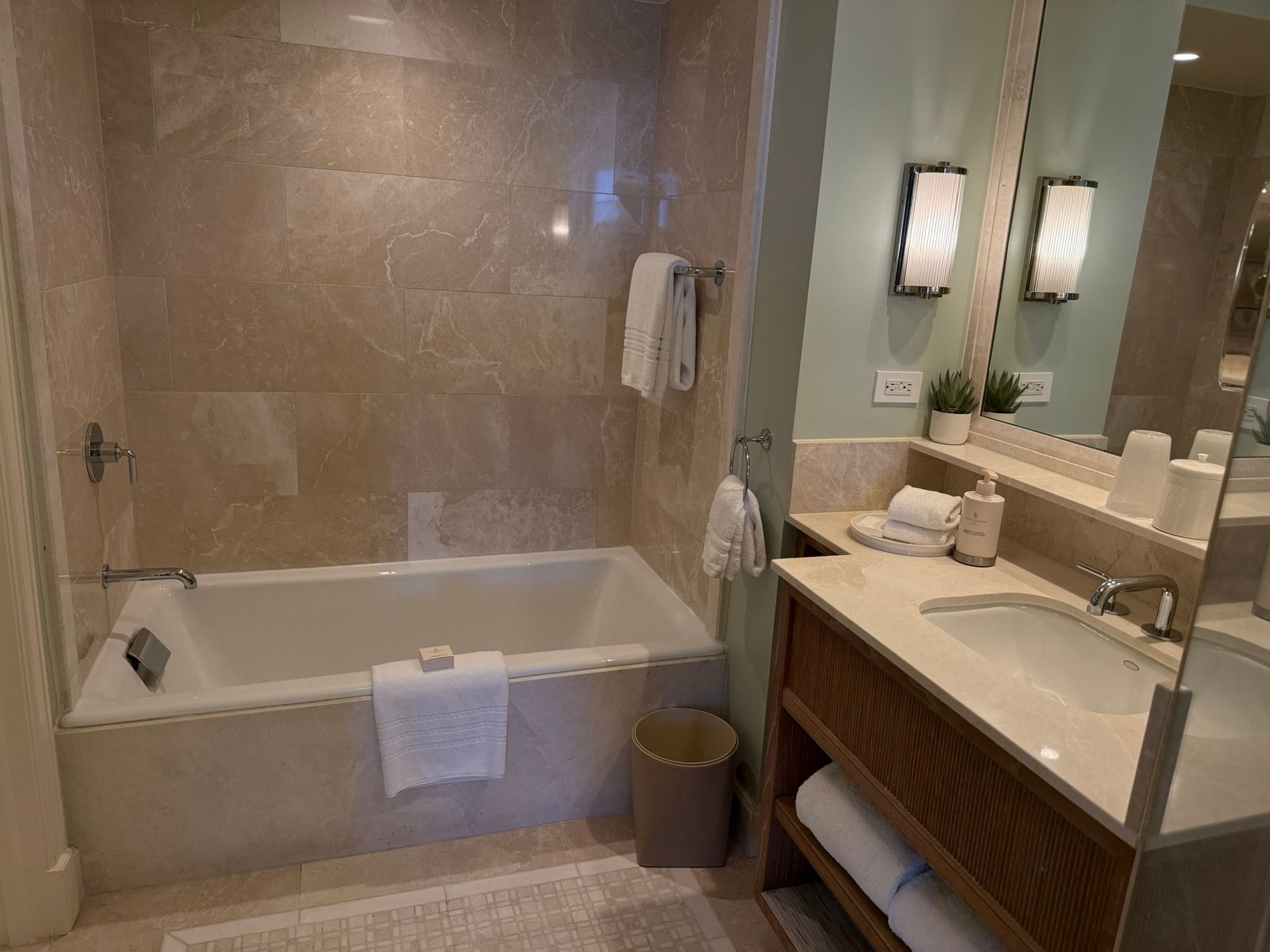 Check-in was smooth, with a welcome glass of champagne that set a five-star tone. Valet parking was convenient, but I wished the staff had offered a quick rundown of resort activities, like gym classes or the complimentary town car. I had to seek out this info myself, which was a minor hiccup. The lobby’s coastal design, pastel hues, indoor palms, and natural light, felt fresh and welcoming, far from the generic beige of some luxury hotels.