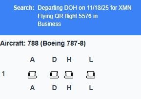 And possibly the most interesting one with Xiamen Air to XMN, where QR business is the single row of First Class on the Xiamen Air 787-8