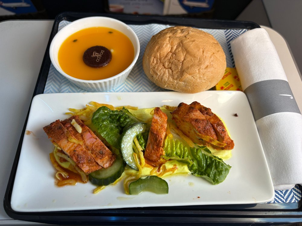 Early evening flight down from Newcastle. After my experiment with the strawberry salad last time, I have moved back to safer territory.