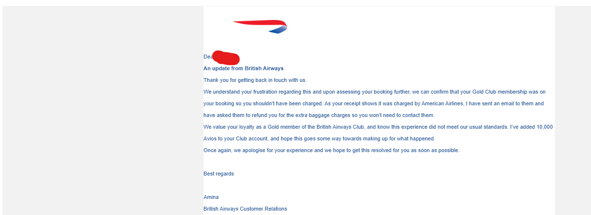 american said not their fault, threw 10k AA miles at me and closed their case, ba closed this one too.