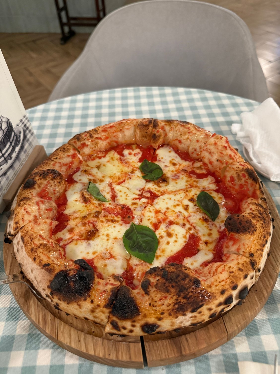 Margherita pizza at Extra Virgin (heehee) in Almaty, Kazakhstan for about 4 USD - the crust was great, but I would have enjoyed it more if the cheese and sauce were of better quality