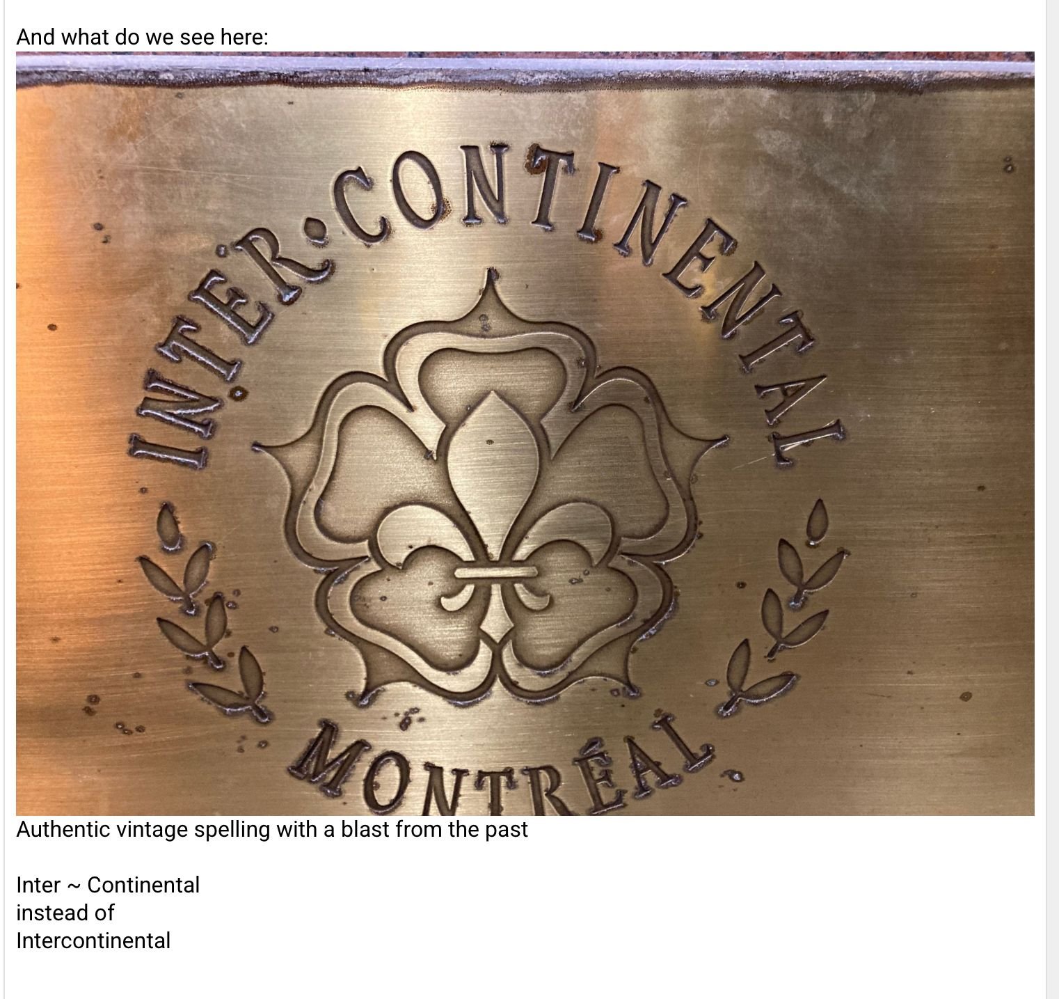 Have to fly back in time on AC AMS-YUL to nick those very classic branding with spelling: Hôtel Inter*Continental Montréal.