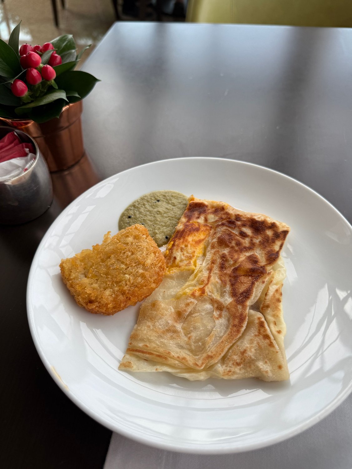 - Breakfast offered in restaurant and is really good - delicious fresh roti station with lovely chutney - great eggs Benedict with salmon and lovely charred flavor on the bread (fresh and crispy) - massive selection with breakfast map required so as to not get lost